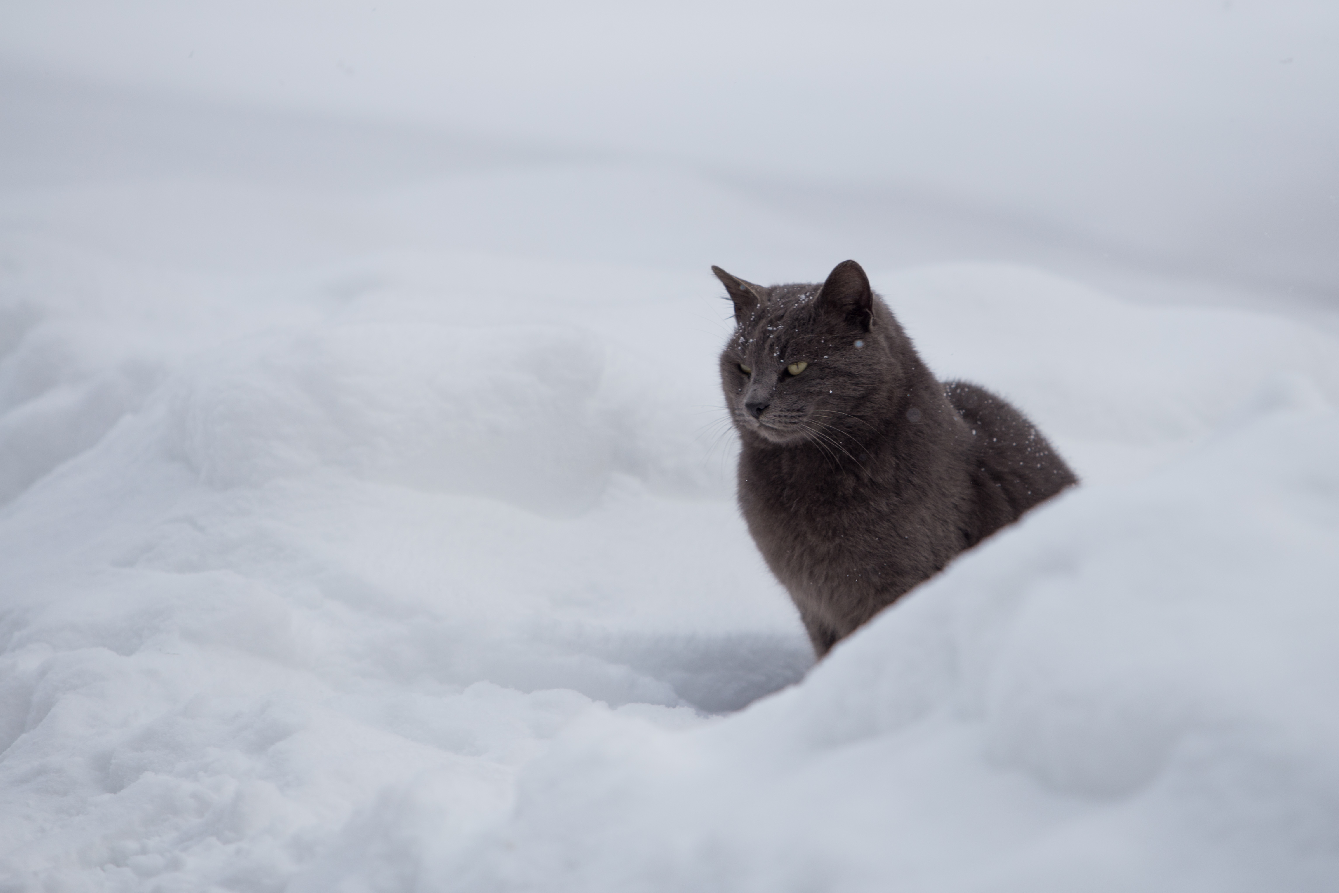Pe măsură ce te adâncești în lumea albă și tăcută, pe alocuri, descoperi câte o pată de culoare – un măgăruș care mănâncă zăpadă și se plimbă de colo-colo, o casă albastră, două bătrânici care se plimbă de braț povestind de zor și, cei mai importanți locuitori ai paradisului alb, pisicile.