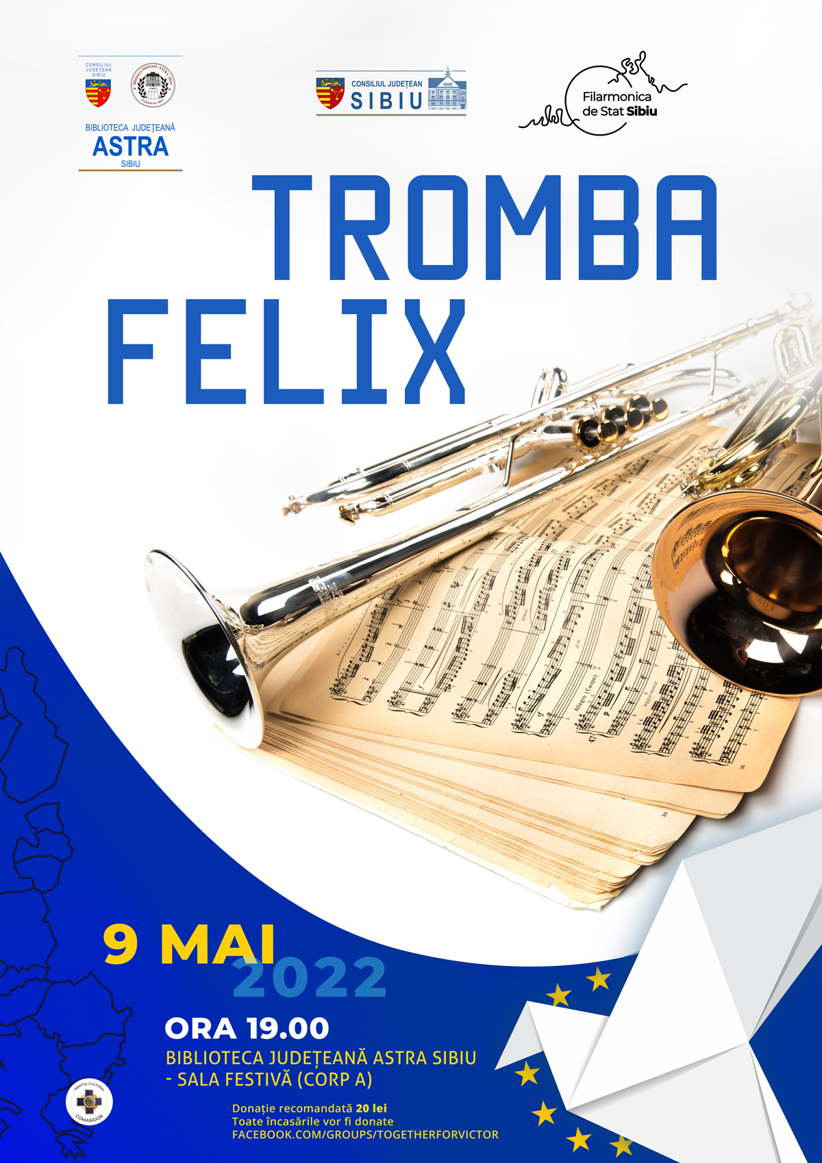 Publicul se va bucura de interpretarea unor compoziții clasice de la Mozart, Neruda și Ceaikovski, până la muzica din faimoasele pelicule apreciate de toate generațiile, dintre care amintim „Cartea Junglei”, „Frumoasa și Bestia”, „Cocoșatul de la Notre Dame”. Tromba Felix, unul din cele mai proaspete proiecte muzicale ale orașului Sibiu, este format din: Medve Sandor (trompetă), David Jurca-Zorlenţan (trompetă), Alin-Ştefan Roman (corn), Ion Palagniuc (trombon) şi Gheorghe Simion Ianţa (tubă). Concertul cvintetului Tromba Felix se alătură campaniei umanitare “#TogetherforVictor”. Recitalul de poezie, intitulat „De-a viața”, va fi oferit de studenții secției de Actorie, din cadrul Departamentului de Artă Teatrală al ULBS (coordonatori: Codruța Presecan și Diana Fufezan).