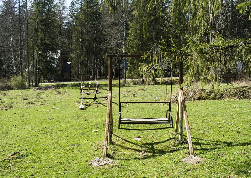 Leagănele și balansoarele ruginite, seamănă perfect cu cele din vremea copilăriei mele iar natura este parca la fel de vie ca atunci. M-am întins pe spate și am privit cerul atât cât se deslușea printre pinii înalți și mi-am imaginat cum era atunci…recunosc, mi-ar fi plăcut să fie și acum la fel. Misteriosul restaurant părăsit care stă să cadă peste mesele aruncate într-un colț, imaginea unui ziar de demult, mobilierul vechi, lumina care pătrunde în interior prin crăpăturile din acoperiș, toate la un loc au reușit să mă transpună într-una din acele zile.