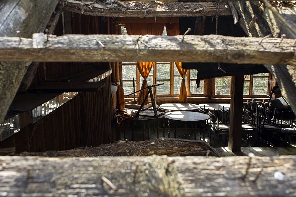 Leagănele și balansoarele ruginite, seamănă perfect cu cele din vremea copilăriei mele iar natura este parca la fel de vie ca atunci. M-am întins pe spate și am privit cerul atât cât se deslușea printre pinii înalți și mi-am imaginat cum era atunci…recunosc, mi-ar fi plăcut să fie și acum la fel. Misteriosul restaurant părăsit care stă să cadă peste mesele aruncate într-un colț, imaginea unui ziar de demult, mobilierul vechi, lumina care pătrunde în interior prin crăpăturile din acoperiș, toate la un loc au reușit să mă transpună într-una din acele zile.