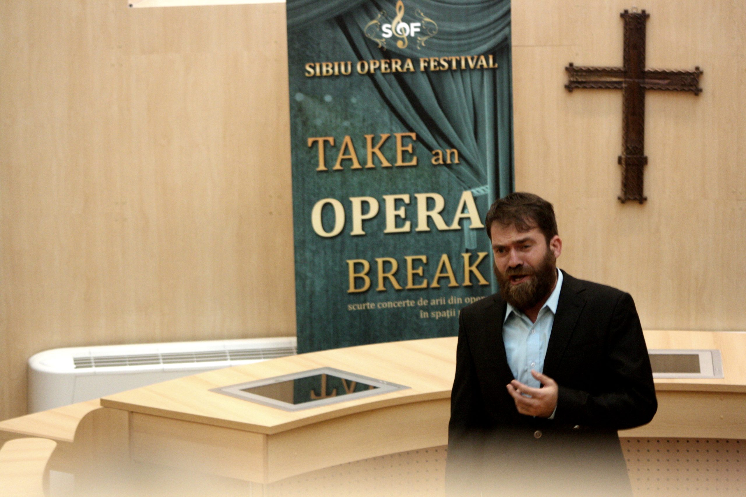 Take an Opera Break este un proiect marca Sibiu Opera Festival, acesta din urmă desfășurându-se până pe 30 septembrie, în mai multe spații din Sibiu. Din păcate vremea nu a permis susținerea concertului din parcul Sub Arini din această după-amiază.