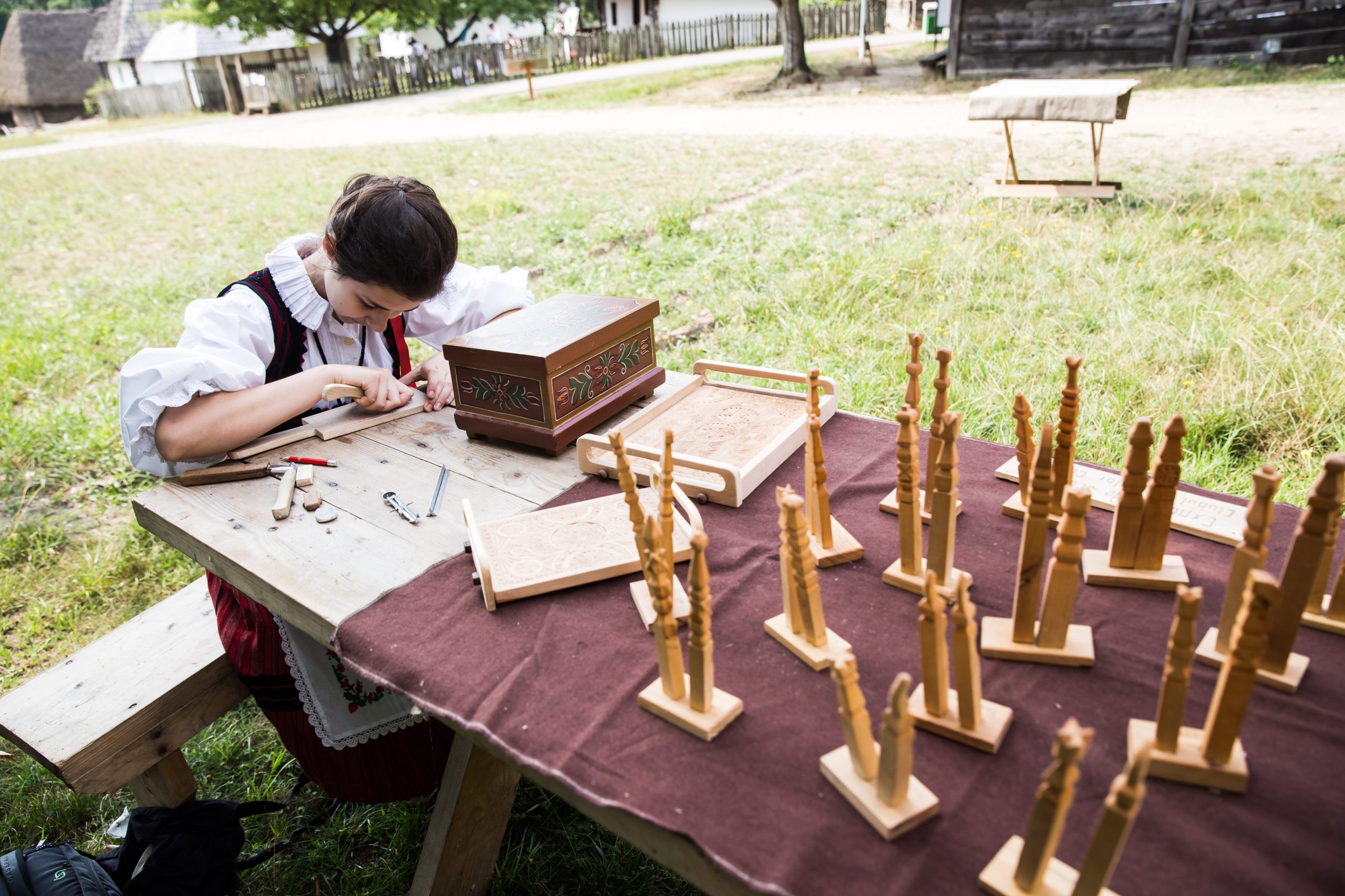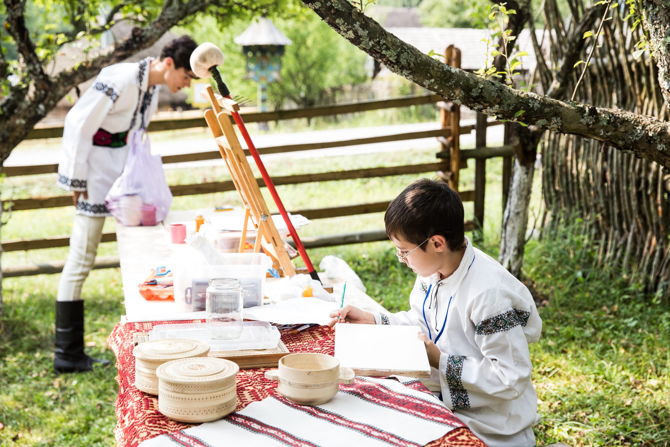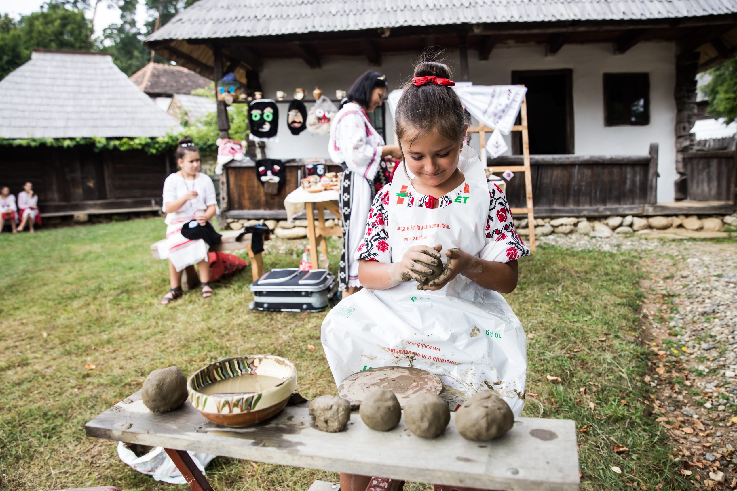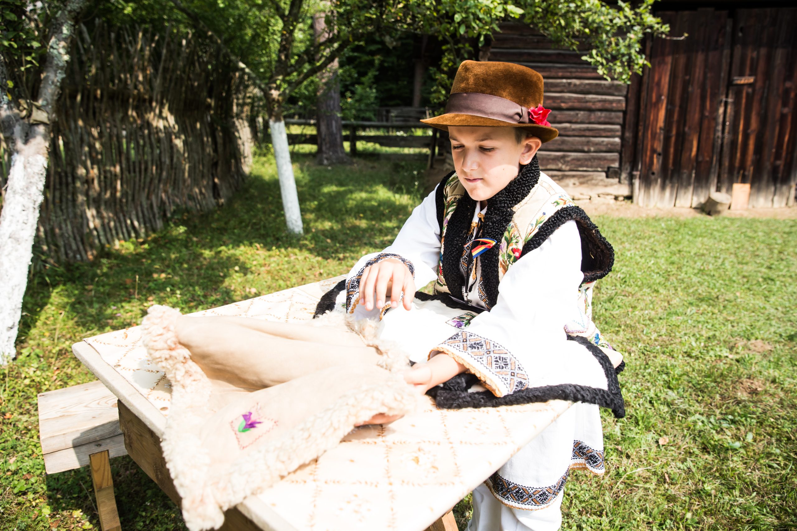 Faza națională a celei de-a XX-a ediții a Olimpiadei „Meşteşuguri artistice tradiţionale” a dat viață, la finalul săptămânii trecute, complexului sat din Muzeul în Aer Liber din Dumbrava Sibiului. Nu mai puțin de 200 de copii, unii mici, alții mari s-au întrecut în măiestrie, în cadrul unei competiții al cărei principal scop este scoaterea în valoare a frumosului din tradițional și a tradiționalului din frumos. Imaginea oferită de această olimpiadă este greu de descris! Orice adjectiv și orice metaforă aș îndrăzni să folosesc, mă supune riscului de a știrbi peisajul de ansamblu creat de portul popular, râsul copiilor, licărul din ochi, dat de emoția unui concurs, mâinile dibace și, nu în cele din urmă, opera lor, magicul glas al talentului. Un colț însă din sufletul poporului român îl putem dezvălui, nu prin ochii noștri, ci prin ochii lor, ai copiilor care au participat la olimpiada meșteșugurilor populare.