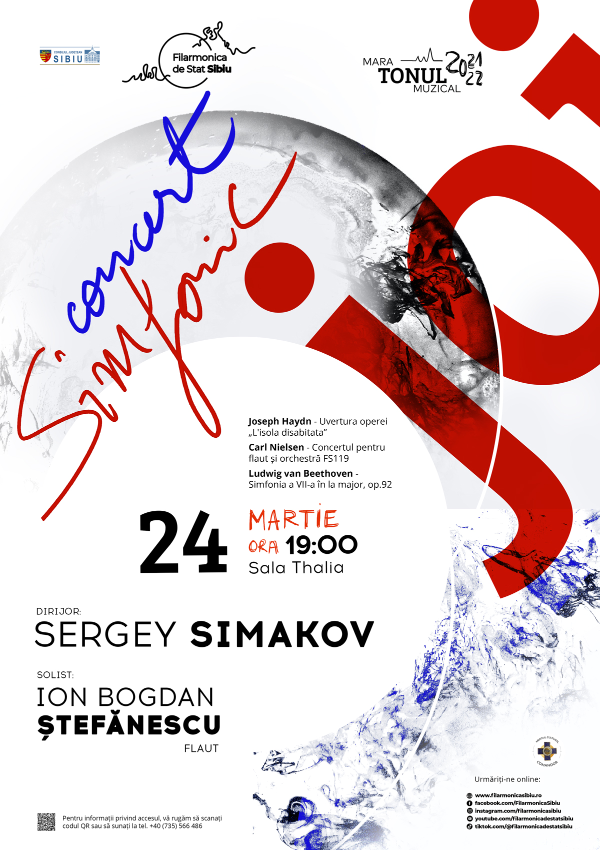 Din programul serii vor face parte lucrări de: Joseph Haydn – Uvertura operei „I’Isola Disabitata”; Carl Nielsen – Concertul pentru flaut și orchestră FS119; Ludwig van Beethoven – Simfonia a VII-a în la major, op. 92.