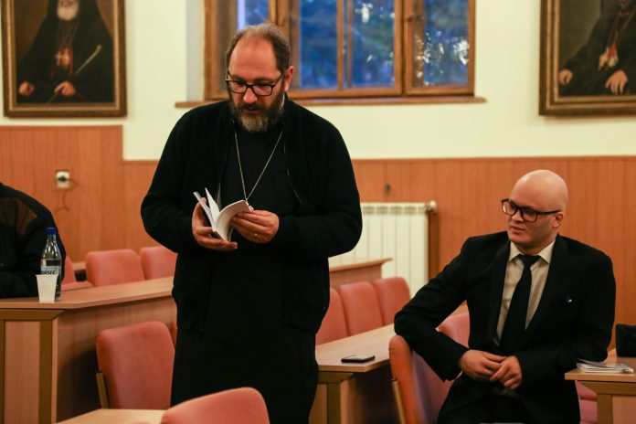 La începutul serii, grupul psaltic „Sfântul Andrei Şaguna” al Facultăţii gazdă, dirijat de George Florea, a susţinut un recital de cântece specifice acestei perioade. Mai apoi, părintele Constantin Necula a vorbit despre autorul volumului şi opera sa.
