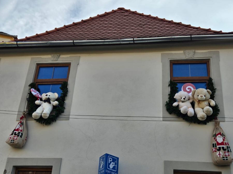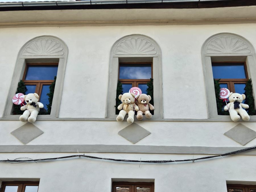 După câteva ore petrecute pe străzile orașului, încercând să mai rezolv din lista de sarcini dinaintea sărbătorilor, ajung în Piața Mare. Intru într-un local, să mă încălzesc cu un ceai fierbinte. Mă așez la o masă la geam, de unde pot admira clădirile decorate cu ghirlande, fundițe, luminițe și, bineînțeles, ursuleți de pluș.