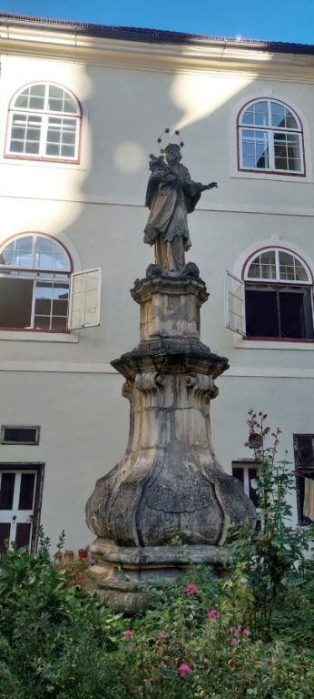 Statuia lui Nepomuk este una dintre puținele sculpturi baroce din piatră întâlnite în Sibiu
