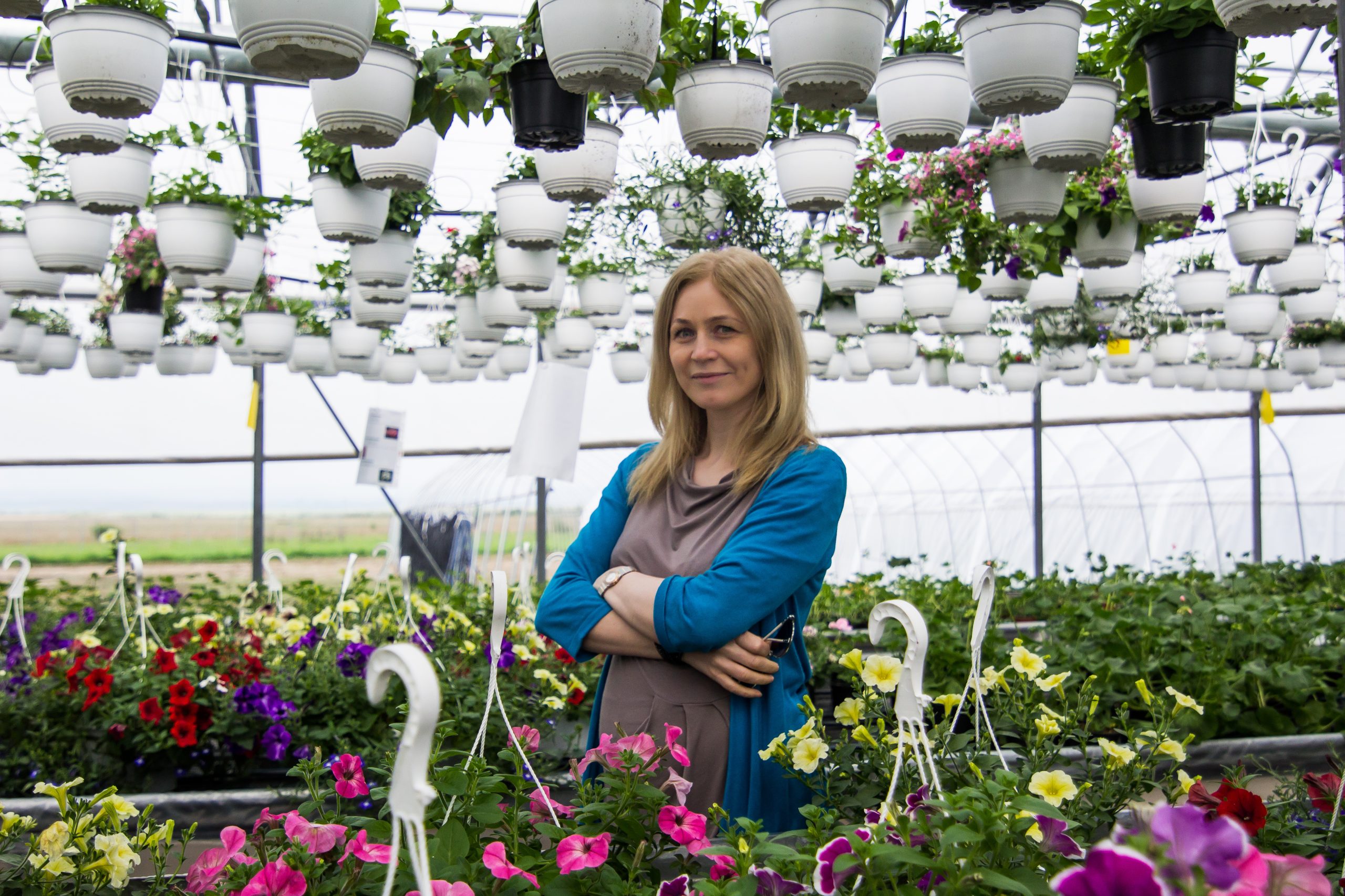 Nicoleta, mămica declarată a tuturor florilor de pe proprietate, confirmă spusele soțului ei. Îmi explică entuziasmată că florile au nevoie de multă dragoste. „Chiar le zic fetele mele, pentru că le vezi încă de mici cum cresc așa fustițe peste fustițe. Sunt foarte frumoase și fiecare floare e foarte diferită. Dacă vezi mușcate, de exemplu, și sunt 50 de soiuri pe masă, clientul nu își dă seama. Pentru noi însă, fiecare floare are particularitățile ei”, spune Nicoleta. Se pare că iubirea pentru flori și dedicarea cu care le vorbește vin de la mama ei, care le acordă aceeași atenție plăntuțelor. Dan ascultă atent poveștile și intervine pe alocuri cu observații. „Toate plantele sunt de fapt niște ființe, care trebuie tratate cu multă atenție și grijă. Nu e totul chiar atât de ușor pe cât pare”, îmi spune și văd o strălucire aparte în privirile amândurora.