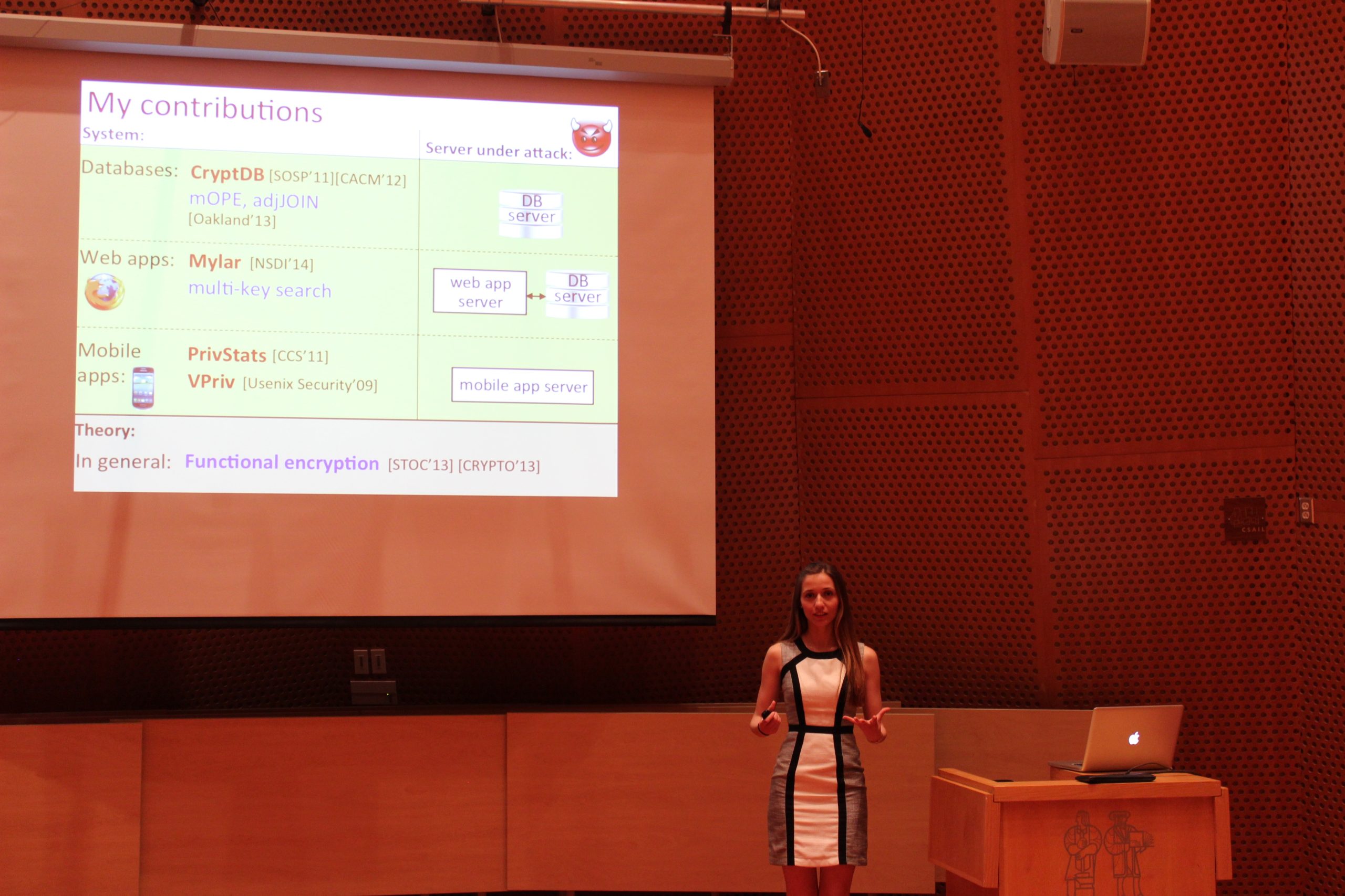 R.A.P.: Doctoratul meu este în domeniul informaticii cu specializarea în securitatea datelor. Teza mea de doctorat contribuie la protejarea datele confidenţiale sau private împotriva hacker-ilor şi a câştigat premiul Sprowls pentru cea mai bună teză în informatică de la MIT. Proiectul meu CryptDB este folosit de companii precum Google, SAP AG şi Lincoln Labs, iar proiectul meu Mylar este folosit de spitalul Newton-Wellesley din Boston pentru a proteja datele private ale pacientilor. Mi-a plăcut securitatea datelor pentru că îmbina matematica și ingineria și pentru că încearcă să rezolve probleme importante și de actualitate. Teza mea de doctorat propune o metodă nouă: datele se stochează cifrate (pentru a le ascunde continutul de hackeri) și în același timp server-ele pot calcula pe date cifrate. Ideea de a calcula pe date cifrate este paradoxică pentru că, de îndată ce datele sunt cifrate, arată aleator, își pierd logica și structura și sunt greu de folosit în calcule la servere.