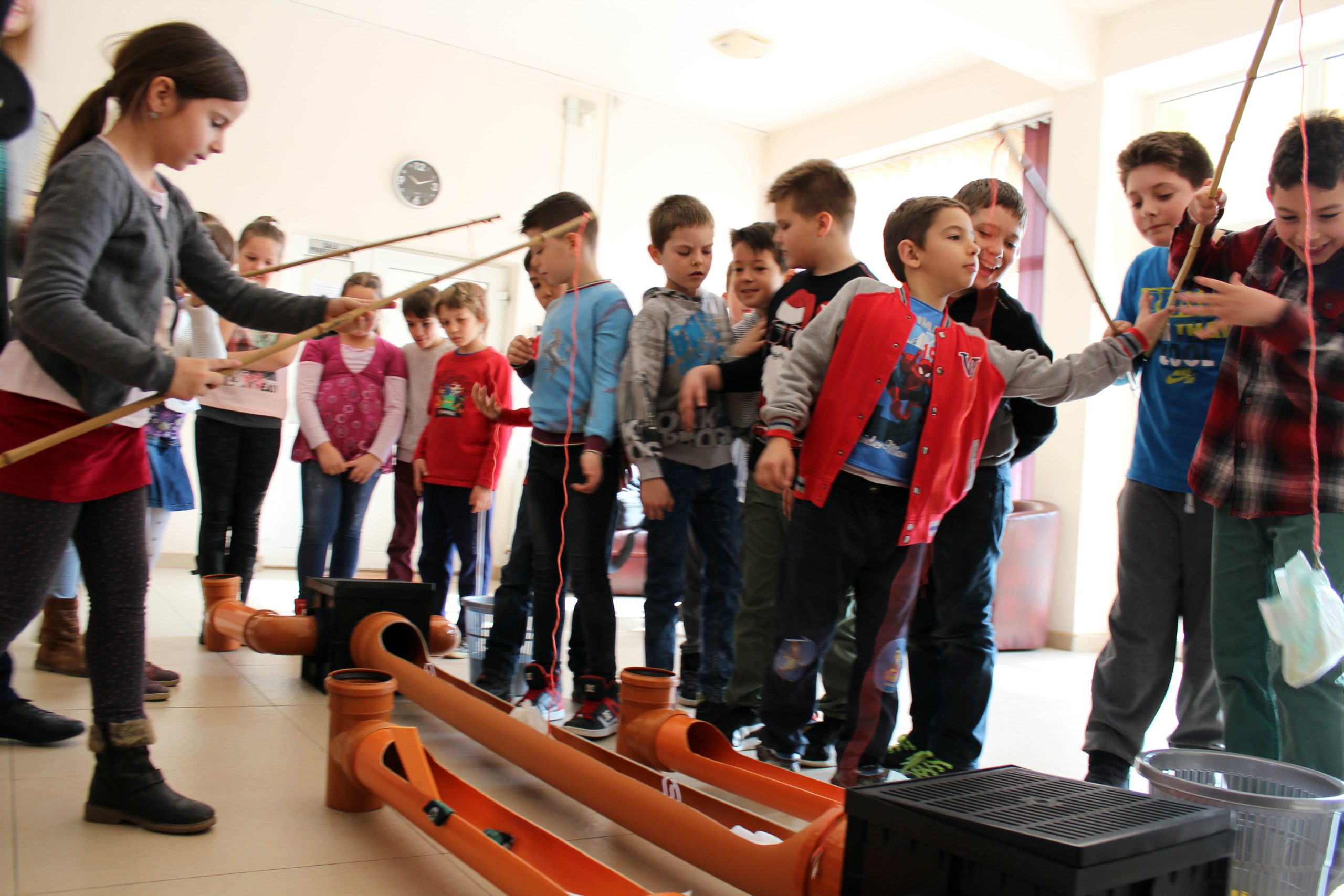”Pescuitul” în rețeaua de canalizare este o premieră în rândul activităților educaționale derulate de companiile de apă – canal din România și vine după alte două realizări inedite: Jocul interactiv ”Salvează picătura !” și puzzle-ul ”Drumul apei”, lansate anii trecuți în cadrul Programului ”Prietenii apei”.