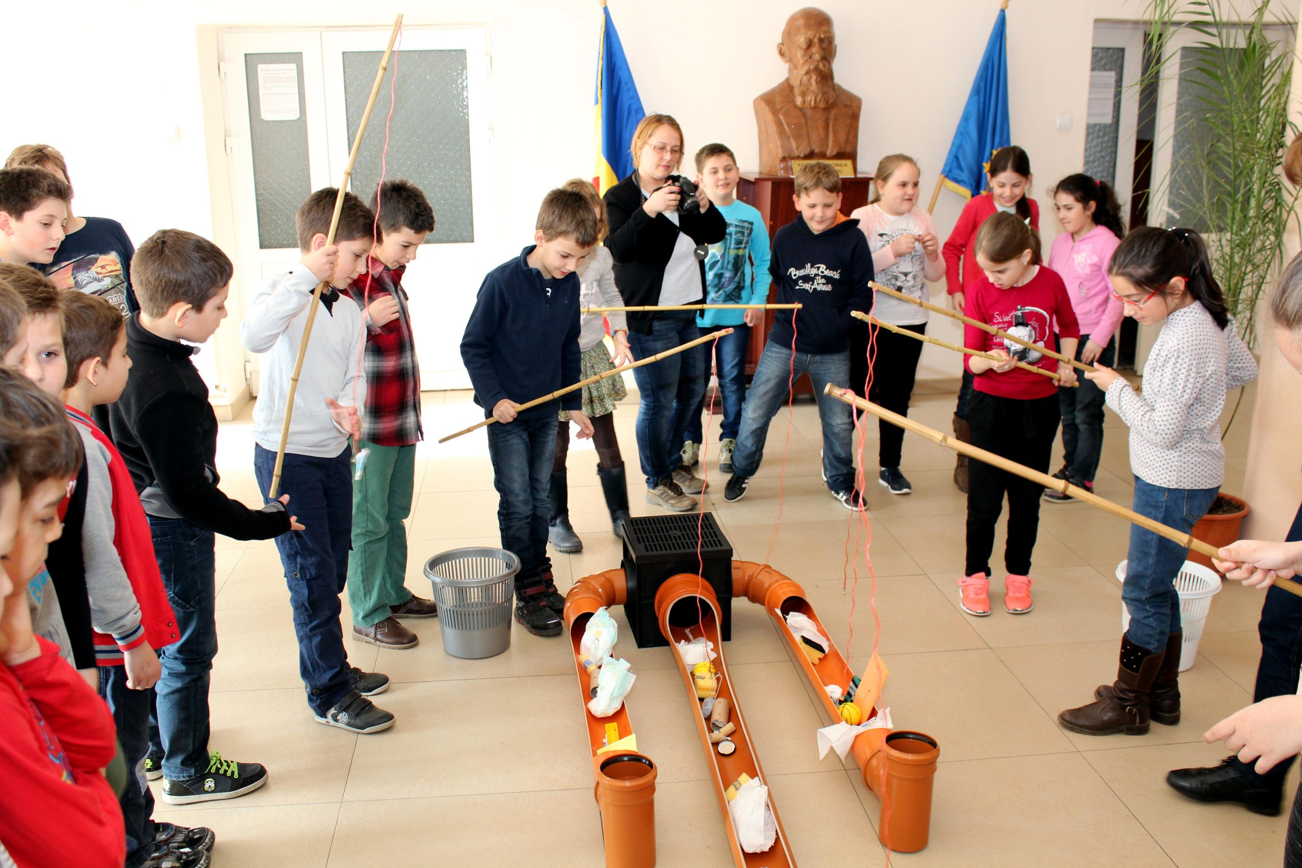 Odată prinse, obiectele au fost puse de cei mici în coșuri de gunoi, eforturul fiindu-le răsplătit cu premii – surpriză.