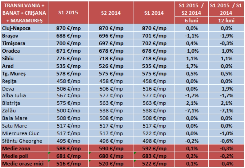 Piața imobiliară din Sibiu a înregistrat o ușoară creștere a prețurilor în prima jumătate a acestui an. Astfel, față de anul trecut, prețurile apartamentelor noi au crescut cu 3%, ale apartamentelor vechi cu 2%, iar ale caselor din oraș, cu 1%. În schimb, în cazul prețurilor terenurilor, se constată o scădere cu 2% față de anul 2014. În ciuda ușoarelor semne de revigorare, prețurile apartamentelor sunt mai mici cu aproximativ 25%, iar ale terenurilor cu 55%, față de anul 2008, când a început criza. Datele sunt furnizate de studiul Analiza pieței imobiliare din România, realizată de Darian DRS SA, cel mai important jucător independent de pe piața de evaluări din România.