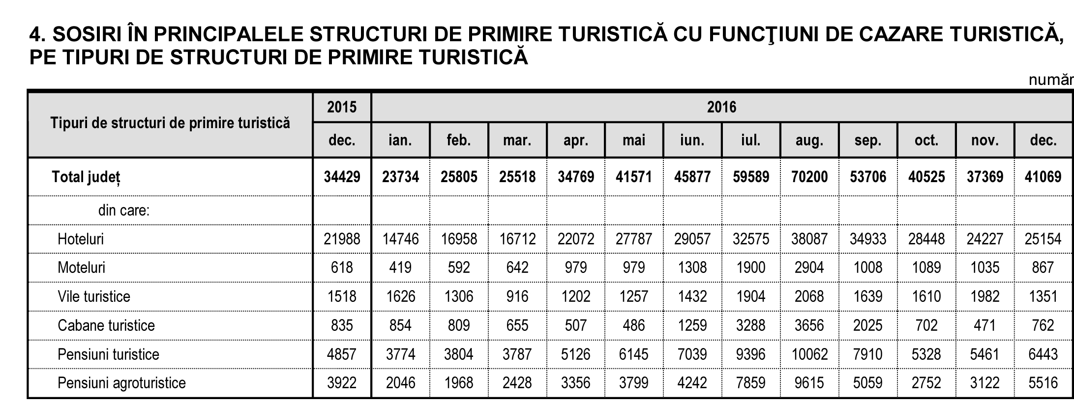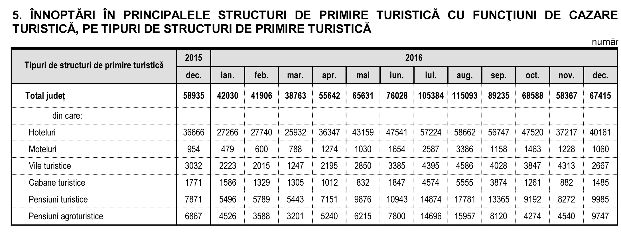 De asemenea, numărul înnoptărilor a fost mai mare, înregistrându-se în total 67.415 înnoptări, majoritatea la hoteluri, cu peste 8.400 mai mult decât în decembrie 2015.