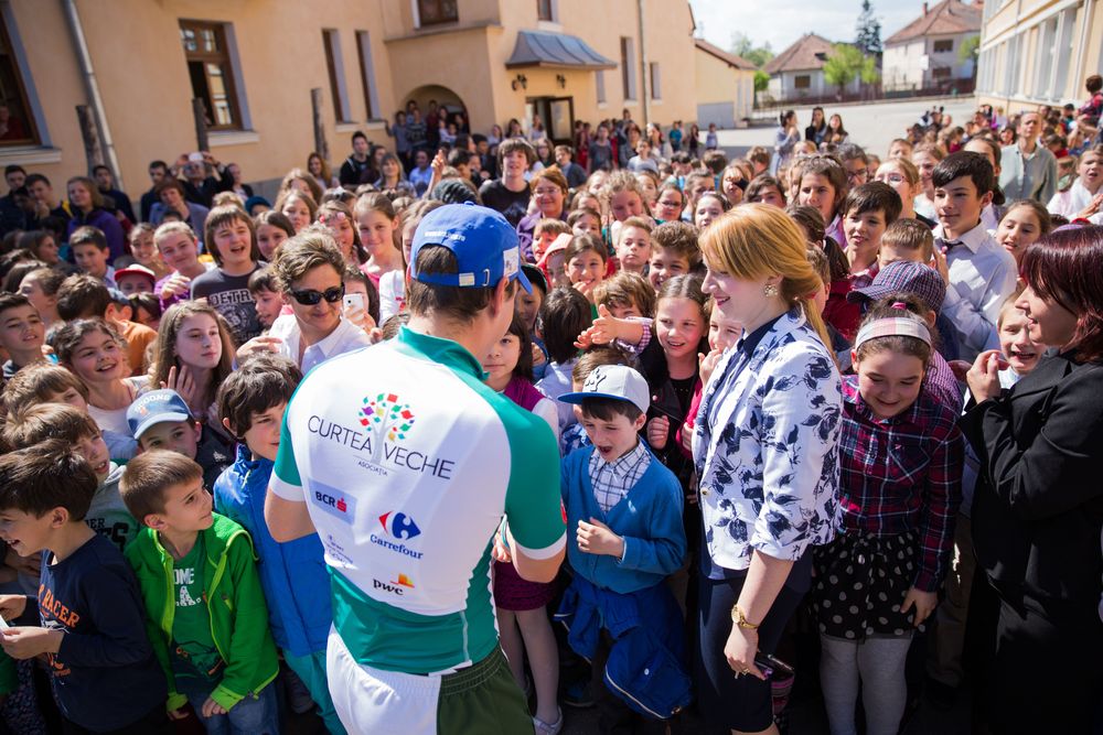 Evenimentul de donare de carte de la Școala Nr.4 a avut loc cu sprijinul Bizza (Metropolis) şi Curtea Veche Publishing, alături de membrii plutonului din cadrul turului ciclist caritabil „Cărţile copilăriei pe bicicletă”. Toți cei prezenți au purtat echipamente cicliste marca Bizza, echipamente ce se diferențiază printr-un design unic, cu elemente de inspirație folclorică. Pe parcursul întâlnirii au luat cuvântul Gabriela Maniu (director, Școala Gimnazială nr. 4 Sibiu), Iren Arsene (preşedinte, Asociaţia Curtea Veche), Smaranda Bălan (managing partner Bizza – Metropolis), Manuela Vrancea (învăţătoare şi coordonatoarea clubului de lectură al Şcolii nr 4) și Alteța Sa Regală Principele Nicolae al României.