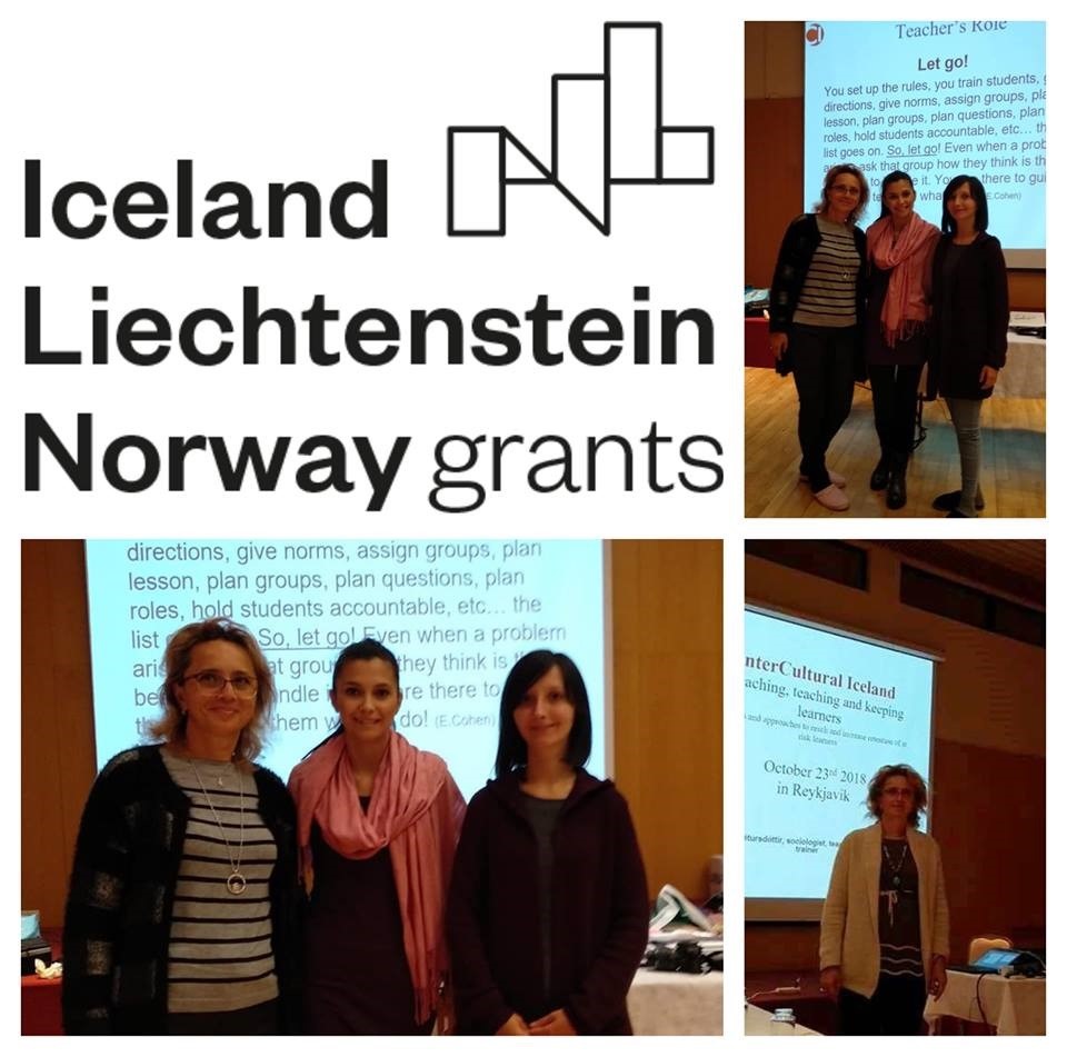 În cadrul cursului ,,Diverse Society-Diverse Classrooms” desfășurat în 07-13 aprilie 2019 Islanda au participat: prof. consilier școlar Veronica Ani- coordonator de proiect, prof. consilier școlar Corina Stan, prof. consilier școlar Clara Samoilă și prof. logoped Ariana Ananie. Obiectivele cursului s-au focalizat pe dezvoltarea competențelor cheie, învățarea prin cooperare în grupuri multiculturale/ diverse și crearea unui mediu de învățare incluziv și creativ. Concluzia formării a fost că ,,Nu există o metodă de predare atât de bună, încât să fie potrivită tuturor elevilor, tot timpul. Soluția se află în diversitate, în diversitatea metodelor de predare și a abordărilor acestora.”- formator Gudrun Petursdottir.