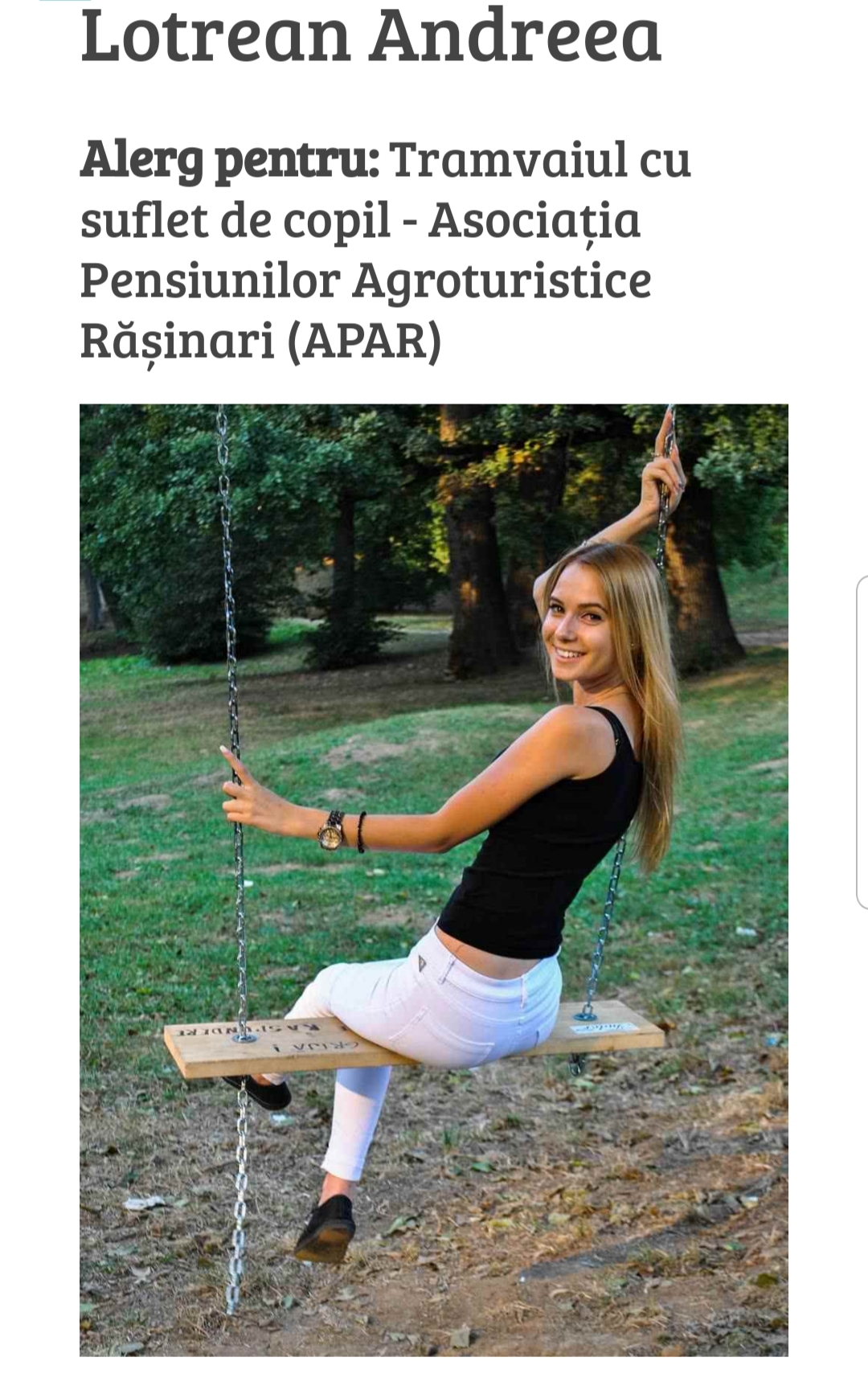 Andreea Lotrean, educatoare la Grădiniţa Copăcele, structură a Şcolii Gimnaziale „Sava Popovici Barcianu” Răşinari, alături de Alexandra Bega şi Ileana Carmen Dămean, cele de la care a pornit ideea participării la Maraton, aleargă la Crosul de 5 km, pentru aceeaşi cauză. De asemenea, elevii Marius Poplăcian, Gheorghiță Omota, Petru Achim şi Ionel Şerban se alătură proiectului și se înscriu la maraton.