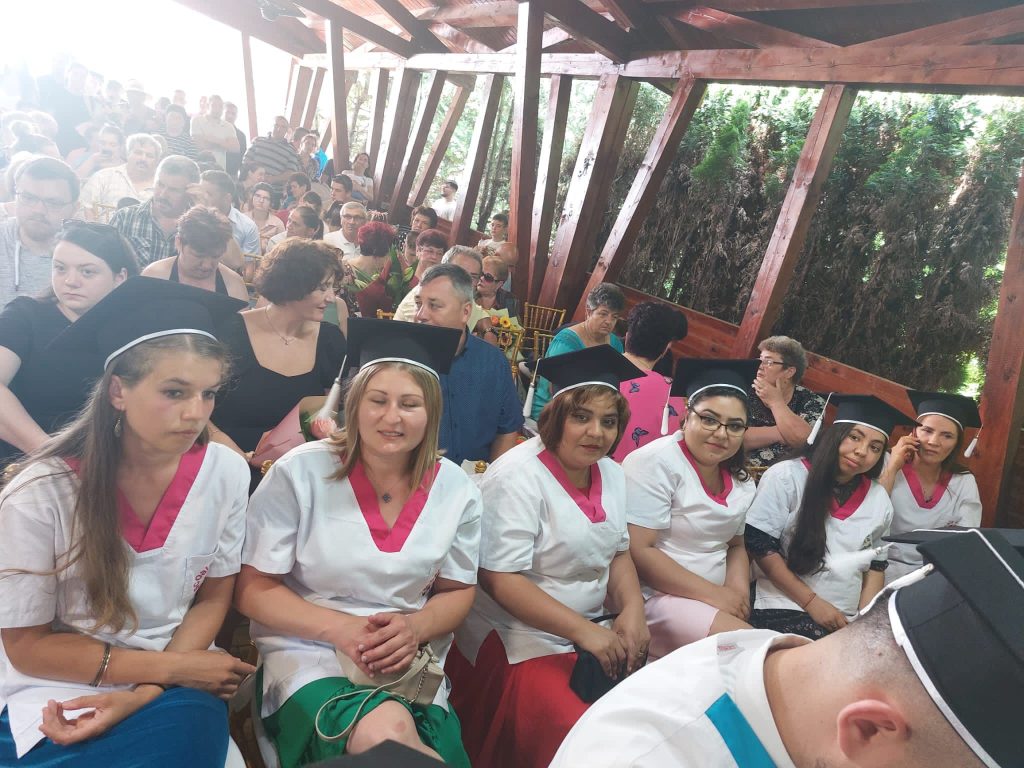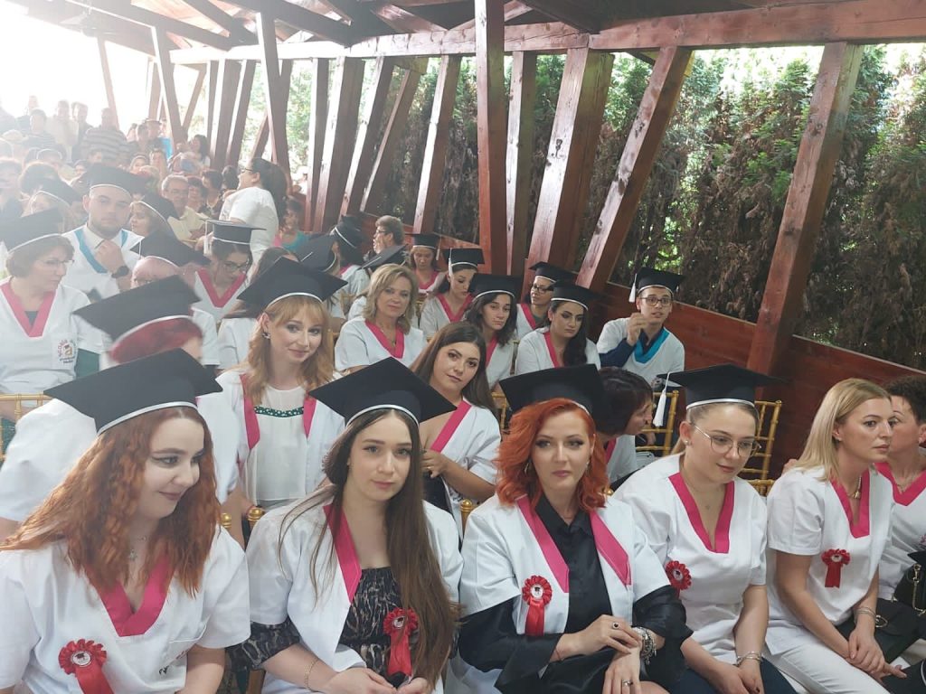 Cei peste 100 de absolvenţi de la specializările Asistent medical generalist şi Asistent medical de farmacie au răspuns prezent pentru ultima oară atunci când s-a strigat catalogul, au cântat imnul absolvenților și au depus jurământul.