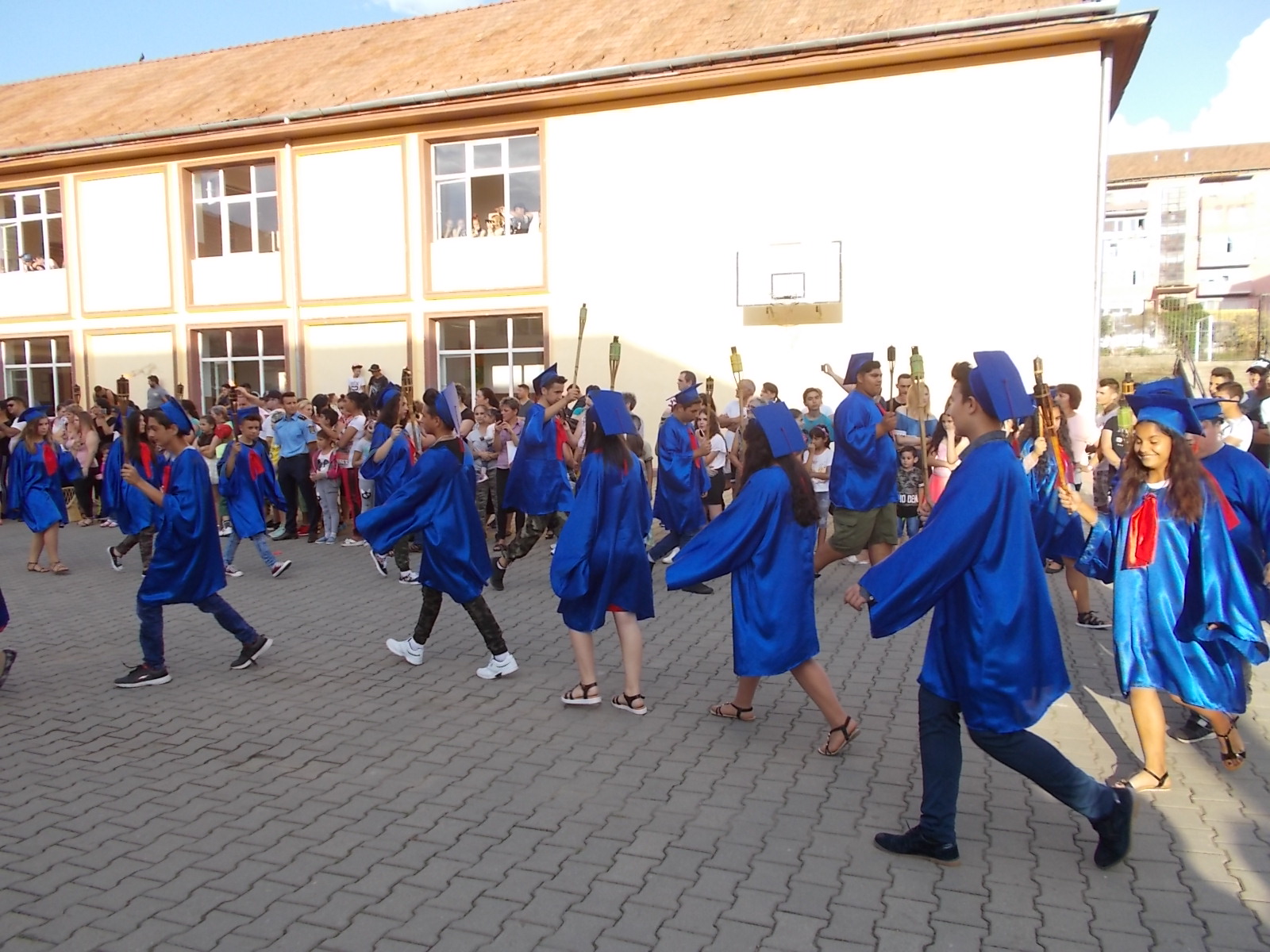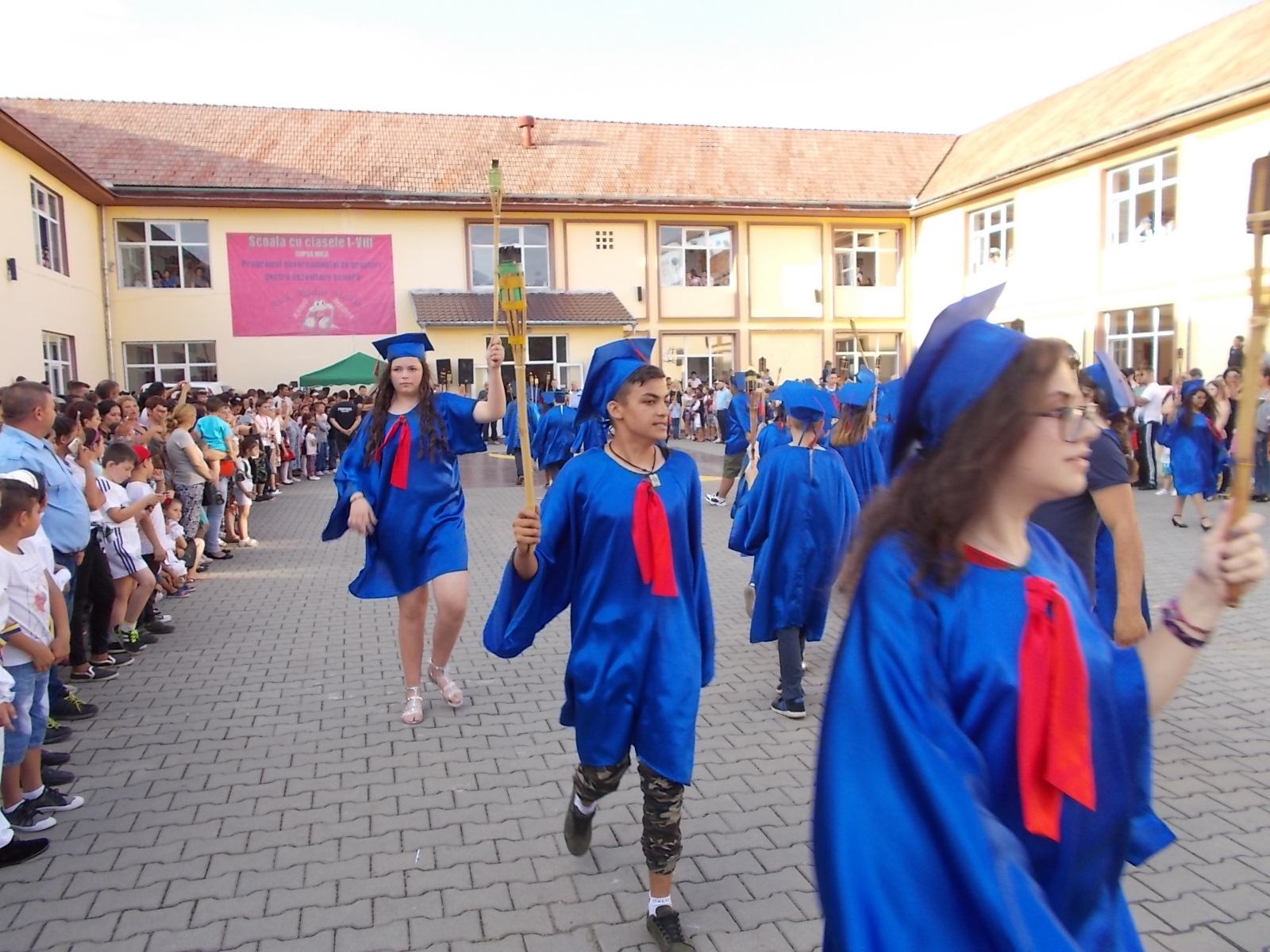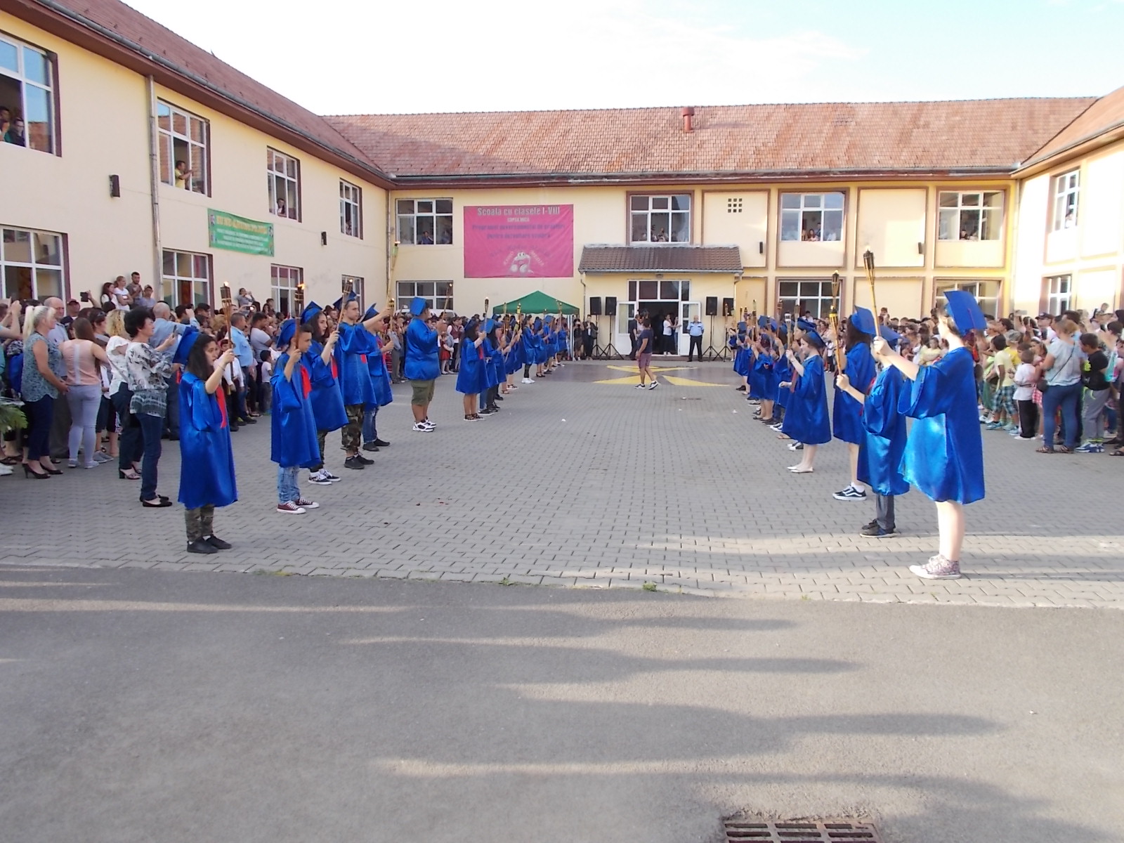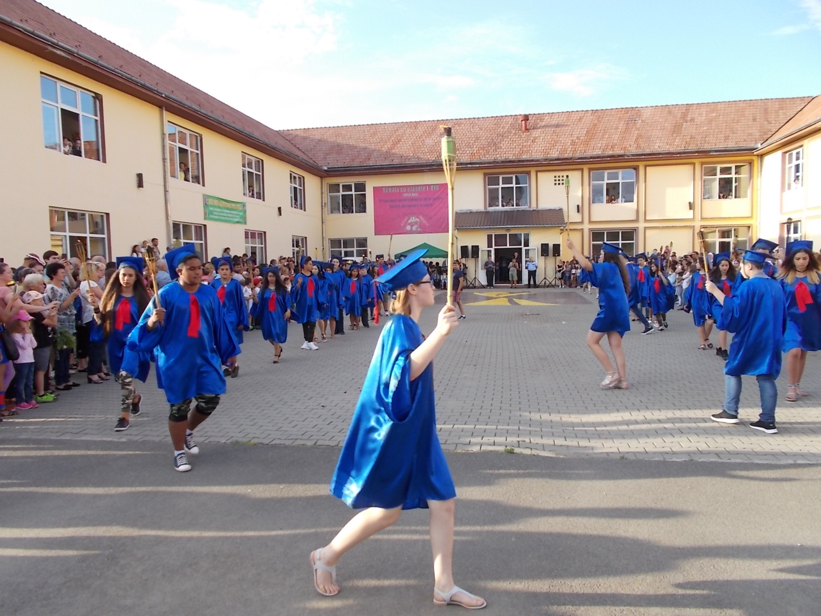 „Ne-am dat toată silința ca anul acesta să iasă ceva spectaculos, așa cum de altfel a și ieșit. Atmosfera a fost incendiară și nu din cauza caniculei, ci datorită nouă, elevilor și dascălilor de la școala din Copșa Mică. Împreună cu elevii am pregătit pentru comunitate și pentru prietenii acestei școli un spectacol de neuitat. Mai multe numere artistice diferite, bogate, muzică, dans, beatbox, flashmob-uri, hore, totul pentru noi, cei de la școala din Copșa Mică. Ideea cu torțele am primit-o de la domnul primar, care a considerat că în semn de respect pentru absolvenții noștri, pentru acest oraș în care trăim cu toții, ar fi deosebit și potrivit să ne retragem într-un mod solemn în fiecare an, de 11 ani încoace”, au spus reprezentanții Școlii Gimnaziale Copșa Mică.