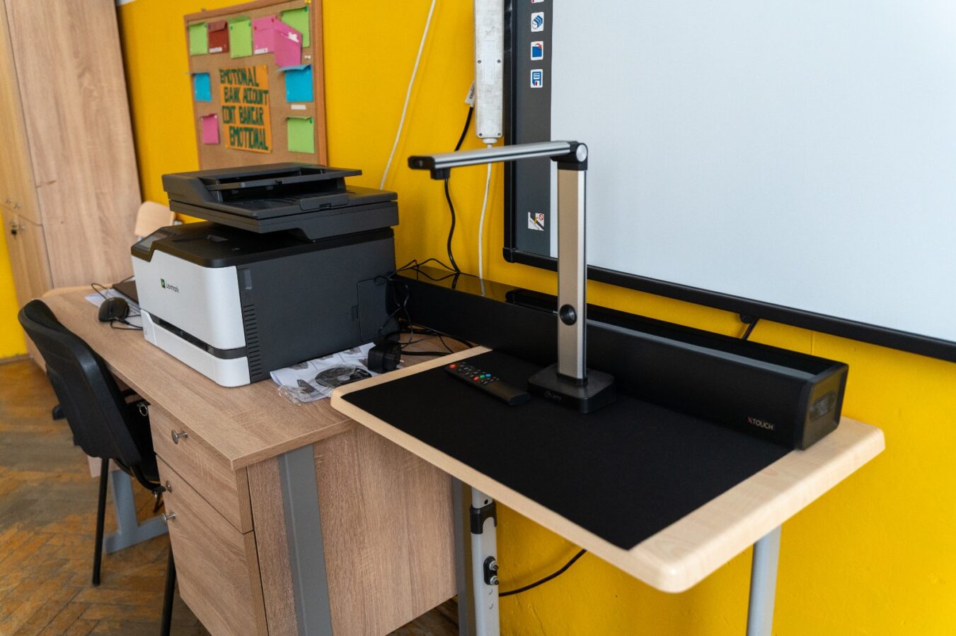 Au fost achiziționate sute de pupitre și scaune, catedre pentru profesori, dulapuri pentru depozitare și table magnetice, contribuind la crearea unui mediu de învățare mai organizat și mai confortabil.