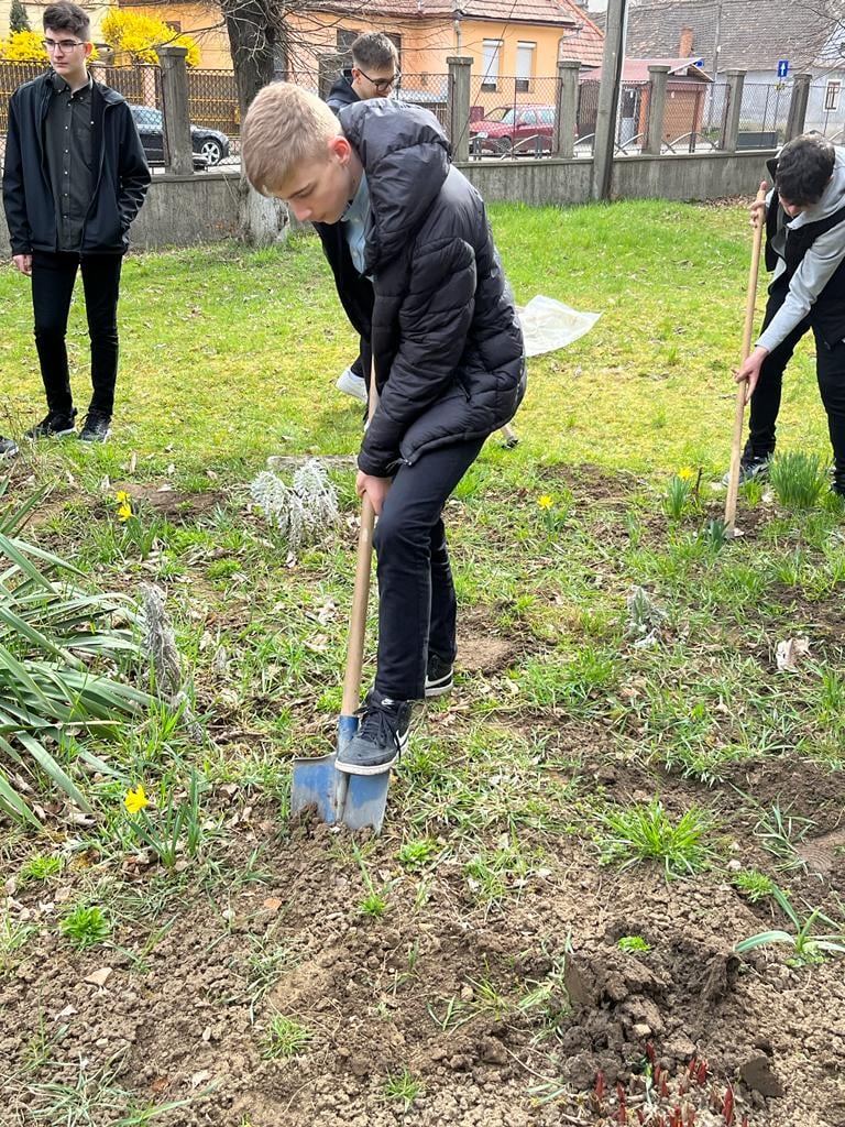 La această activitate se adaugă și faptul că luna trecută elevii clasei a X-a Științele Naturii intensiv Engleză au amenajat ronduri de flori în cadrul programului Pulchra, tot în spațiul verde mai mult decât generos al Liceului Teoretic “Axente Sever”.