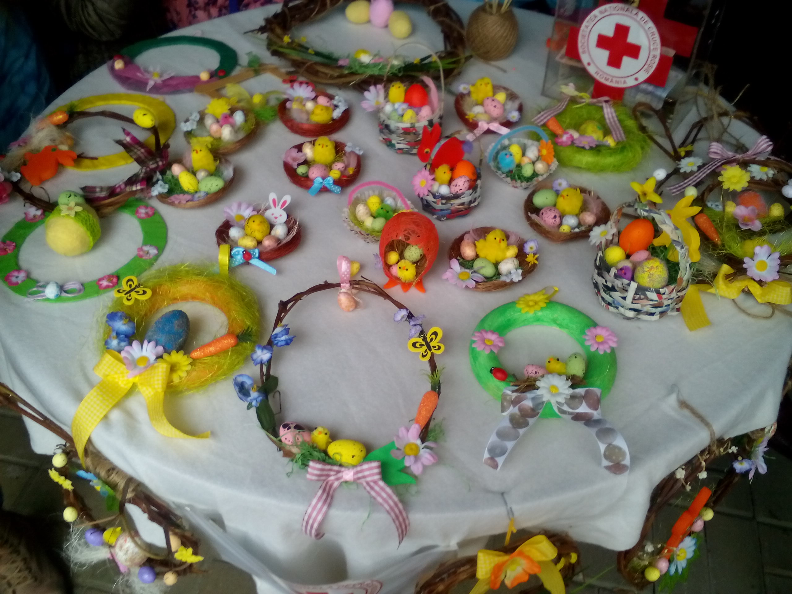 Au fost expuse spre vânzare obiecte realizate de elevi, în timpul bazarului funcționând și ateliere în cadrul cărora elevii și-au demonstrat îndemânarea în confecţionarea de astfel de obiecte cu tematică Pascală. C