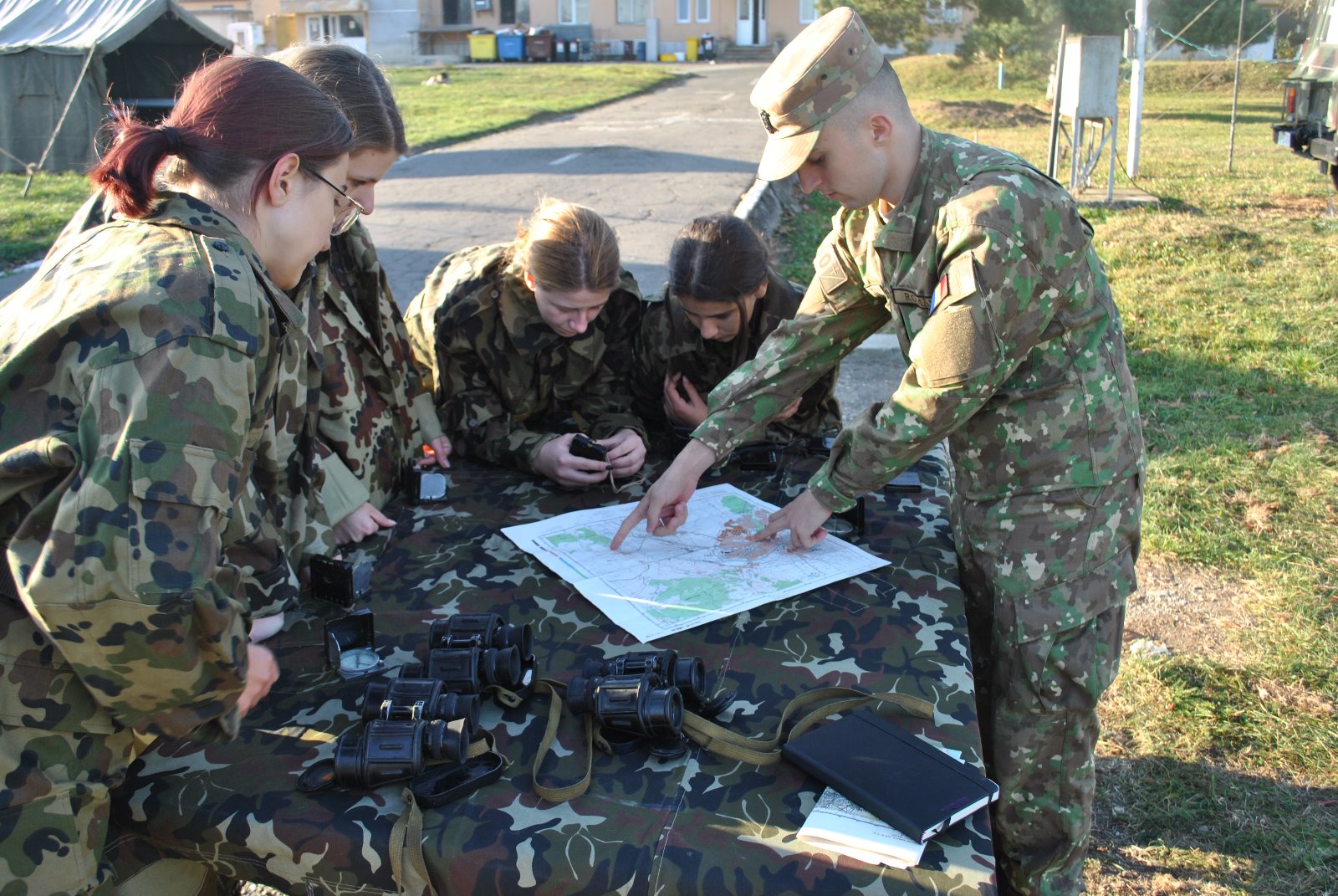 activităţi de informare asupra ofertelor educaţionale şi a modului de recrutare şi selecţie; participarea la şedinţe de instrucţie de front, instrucţia tragerii cu armamentul din dotare, topografie militară, cunoaşterea şi exploatarea tehnicii de comunicaţii şi informatică şi educaţie fizică militară.
