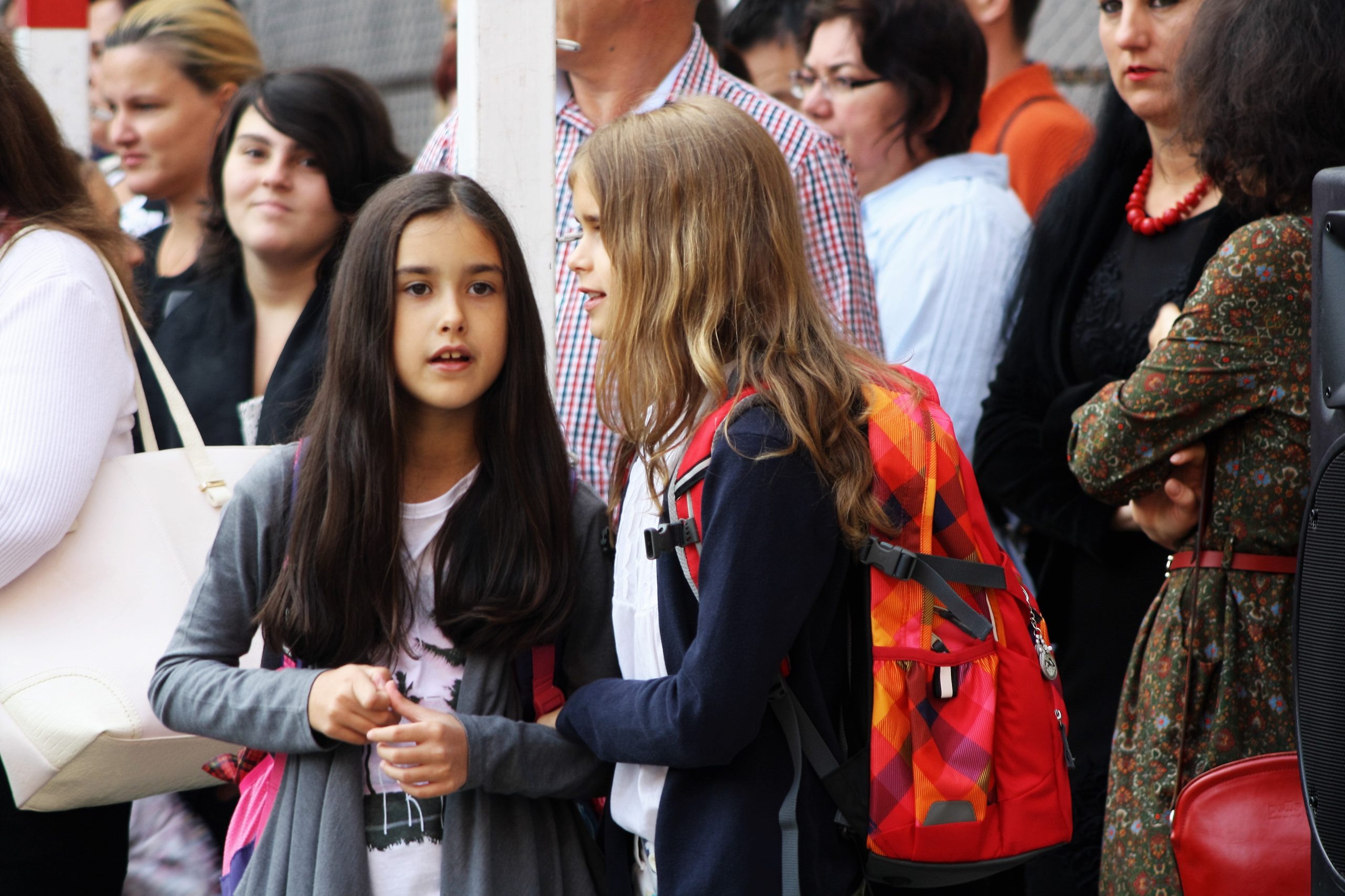 „Am puține emoții, pentru că acum am intrat în clasa a V-a și o să îmi cunosc noii colegi”, spune Maria. Colega ei, Alexandra, la fel de emoționată, spune că cel mai mult își dorește să aibă note bune. „E cel mai important lucru – să mă obișnuiesc repede cu noua școală și să reușesc să învăț bine încă de la început”, explică Alexandra.