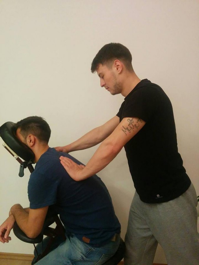 Chair Masajul sau masajul pe scaun este realizat cu ajutorul unui scaun portabil, special conceput astfel încât odată aşezat pe el să te simţi confortabil şi relaxat. Un atuu al acestui masaj este faptul că nu se folosesc uleiuri şi creme, şi nu trebuie să te dezbraci. Scaunul de masaj cu design ergonomic, susţine capul, trunchiul, braţele şi picioarele astfel încât corpul rămâne într-o poziţie verticală care permite alinierea adecvată a coloanei vertebrale. Odată aşezat în această poziţie poţi respira mai profund, astfel respiraţia şi pulsul scad, fapt care aprofundează starea de relaxare. Mai multe informaţii despre acest tip de masaj puteţi găsi pe pagina următoare: