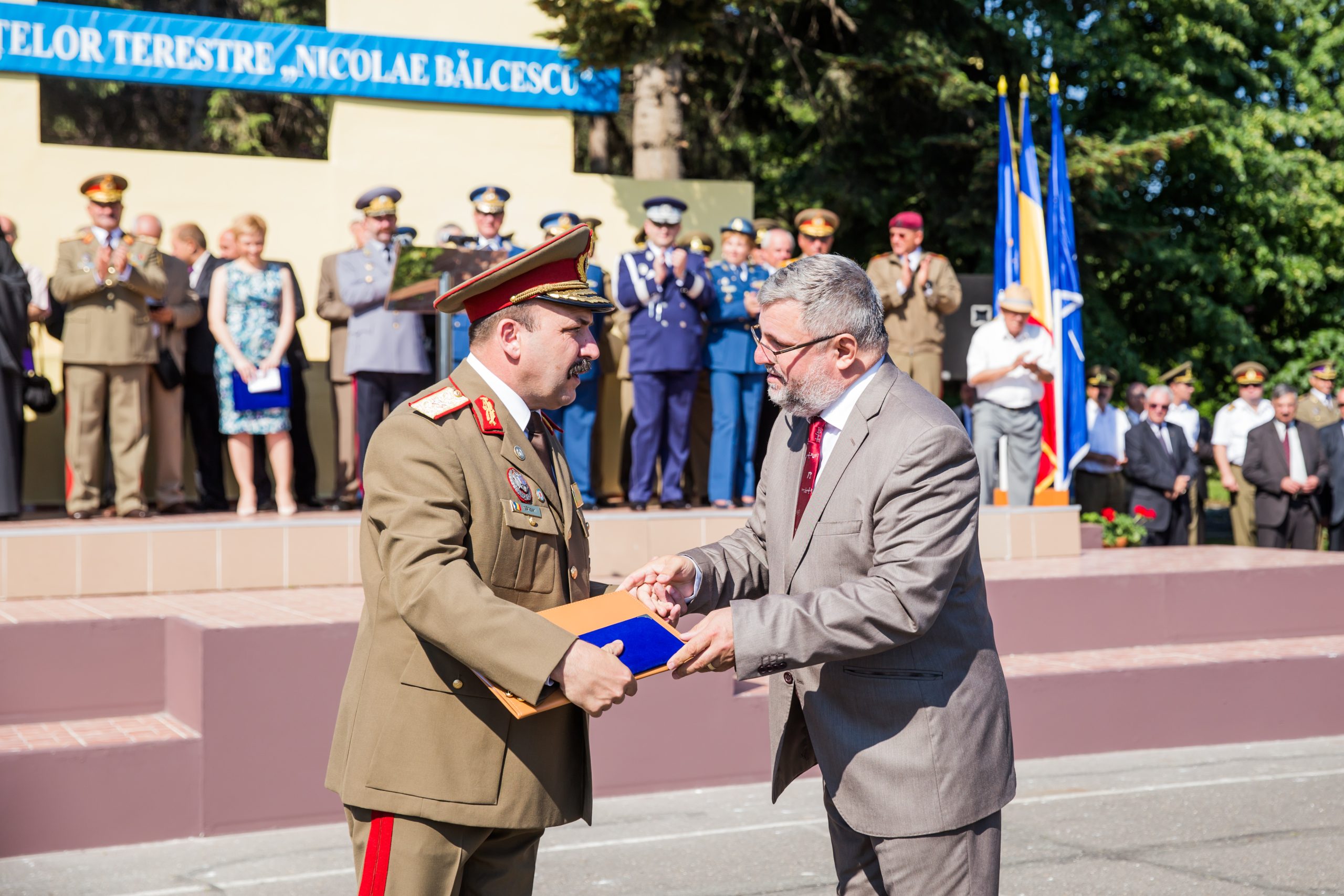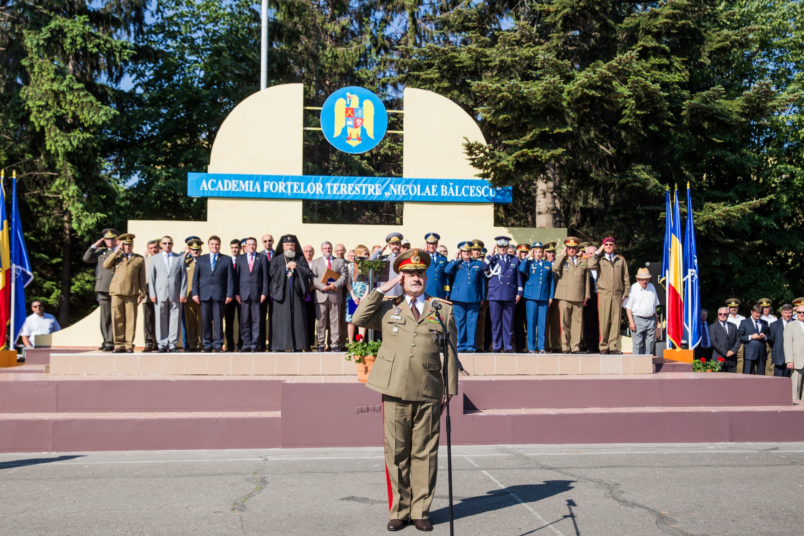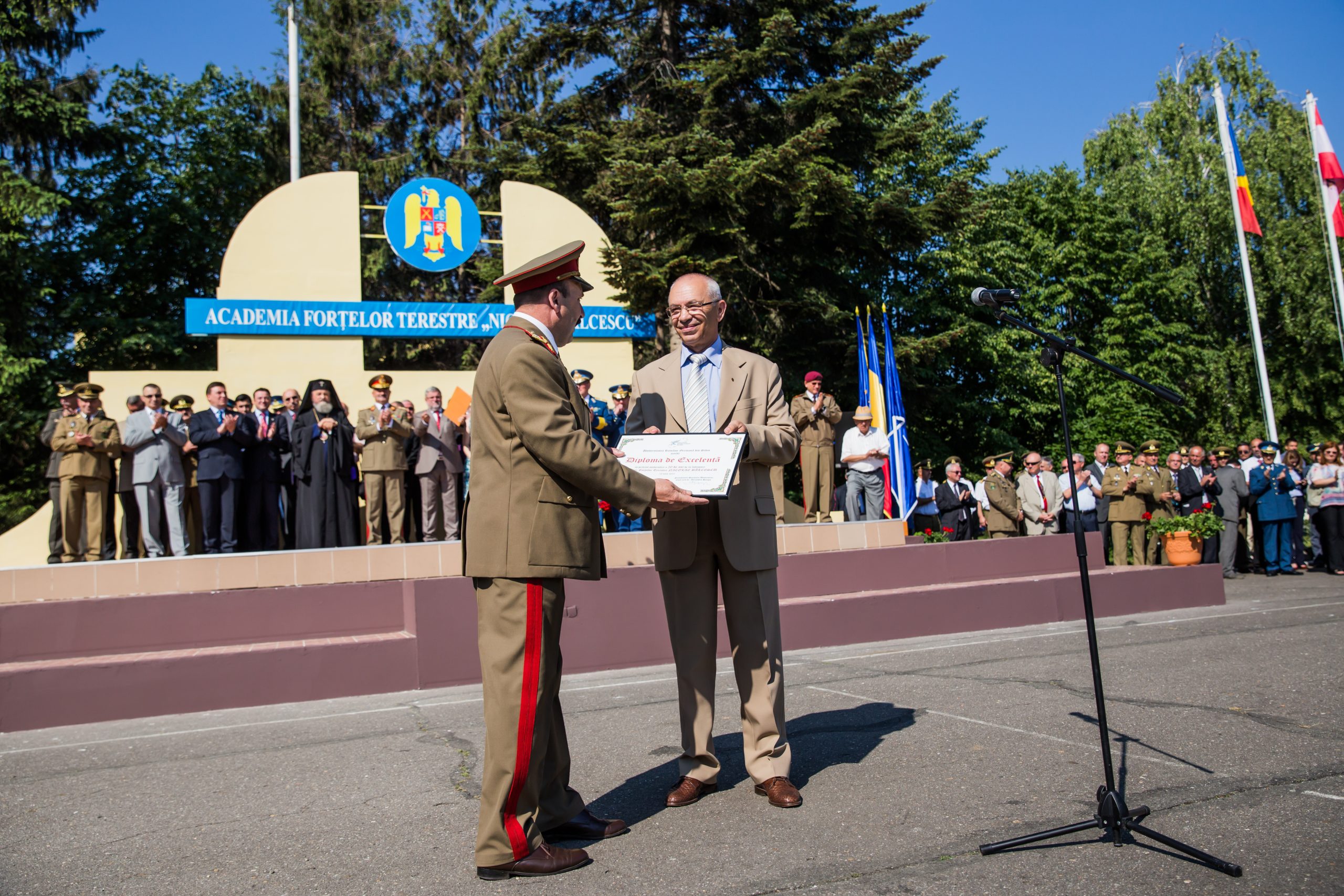 Academia Forţelor Terestre „Nicolae Bălcescu” a sărbătorit vineri, 12 iunie, împlinirea a 20 de ani de la transformarea instituţiei în Academie Militară şi 168 de ani de învăţământ militar românesc. Cu această ocazie, repezentanții instituției de învățământ militar au organizat o serie de activități. Dimineață a avut loc un ceremonial militar, în cadrul căruia s-au oferit diplome și distincții militarilor merituoși, au fost ținute discursuri și au fost felicitați elevii și studenții Academiei. Printre medaliați s-a aflat și comandantul Adademiei, Cl. bg. prof. univ. dr. ing. Ghiță Bârsan, care a primit Emblema de Merit a Acțiunii Umanitare, clasa a III-a, pentru merite deosebite pe timpul participării la intervenții în situații de urgență în țară. A urmat un concert de muzică susţinut de Muzica militară a garnizoanei Sibiu. Manifestările au continuat cu „Ziua Porţilor Deschise”, timp în care, toți cei care au trecut porțile unității au avut parte de un program special, conceput cu prezentări de tehnică şi armament militar, expoziţii de carte şi fotografie şi multe altele. Printre vizitatori s-au numărat și copii de grădiniță, curioși să afle secretele lumii militare.