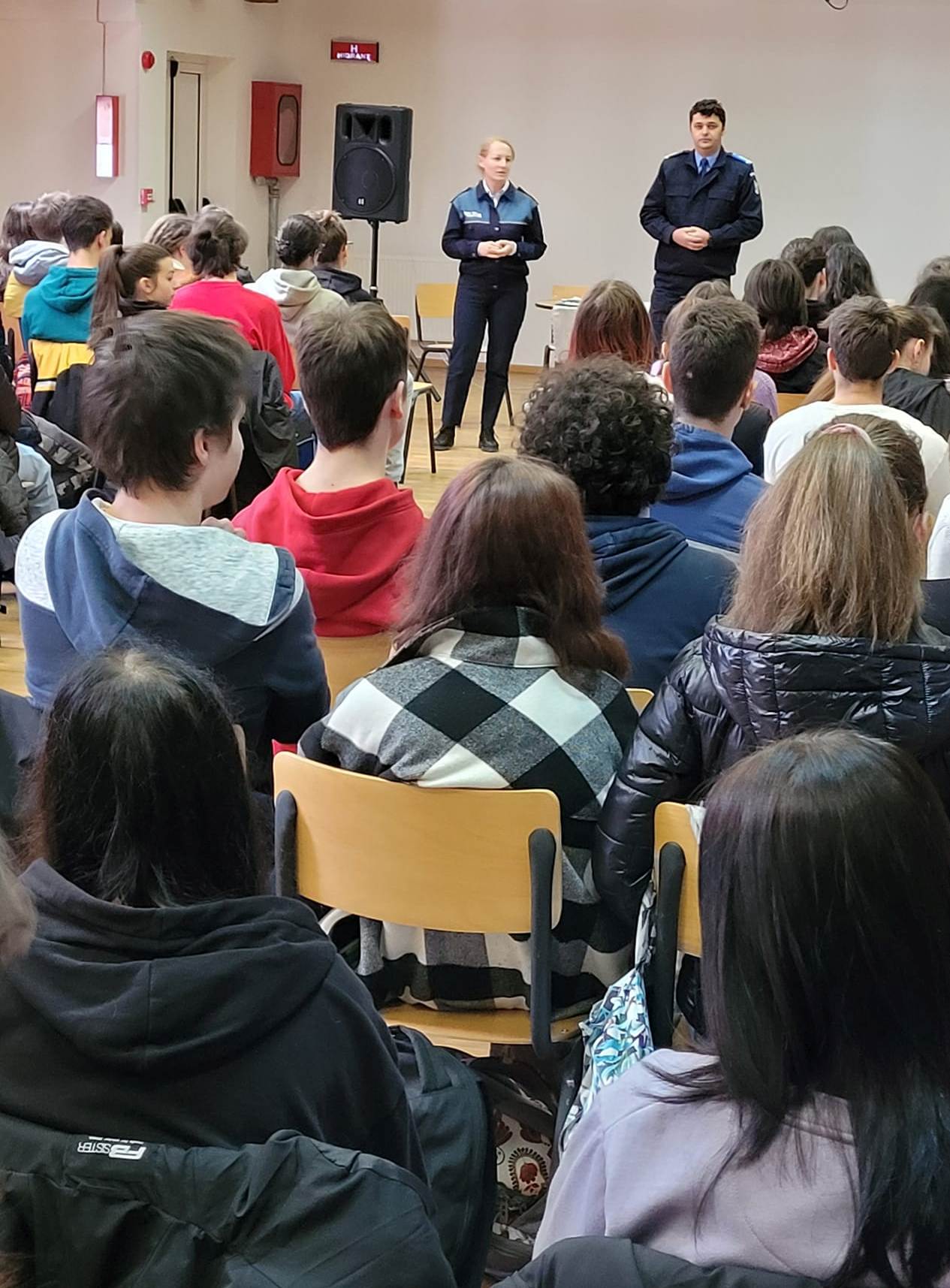 „Au susţinut prezentări şi discuţii tematice membrii echipei multidisciplinare formate din Mihaela Huzoaica comisar de poliţie, Gabriela Pițigoiu, agent de poliție de la Inspectoratul de Poliție Județean Sibiu, Radu Cristian, maior în cadrul la Inspectoratulului de Jandarmi Județean Sibiu, prof. Stănculescu Gabriela, director adj. CNGL Sibiu, prof. dr. Valeria Purcia, director CJRAE Sibiu, și prof. dr. Simona Cîmpean, consilier școlar – coordonator al activităților din cadrul campaniei”, explică organizatorii.