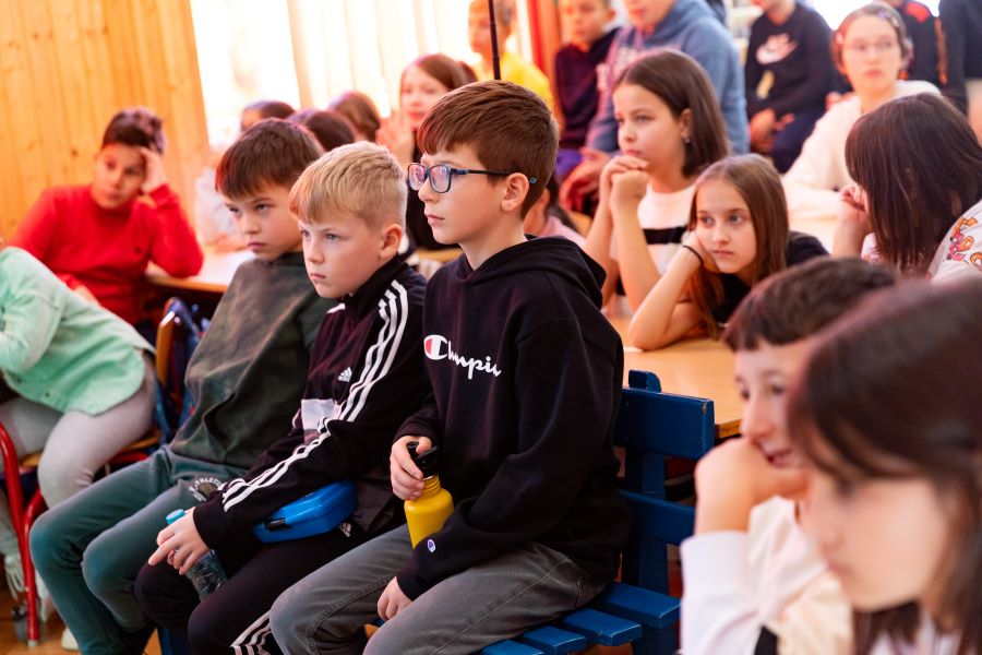 25 de elevi de clasa a IV-a de la Școala Gimnazială „Regina Maria” Sibiu (clasa învățătoarei Mirela Șandru) au avut parte de o oră de educație muzicală inedită, miercuri, la Filarmonica de Stat Sibiu.