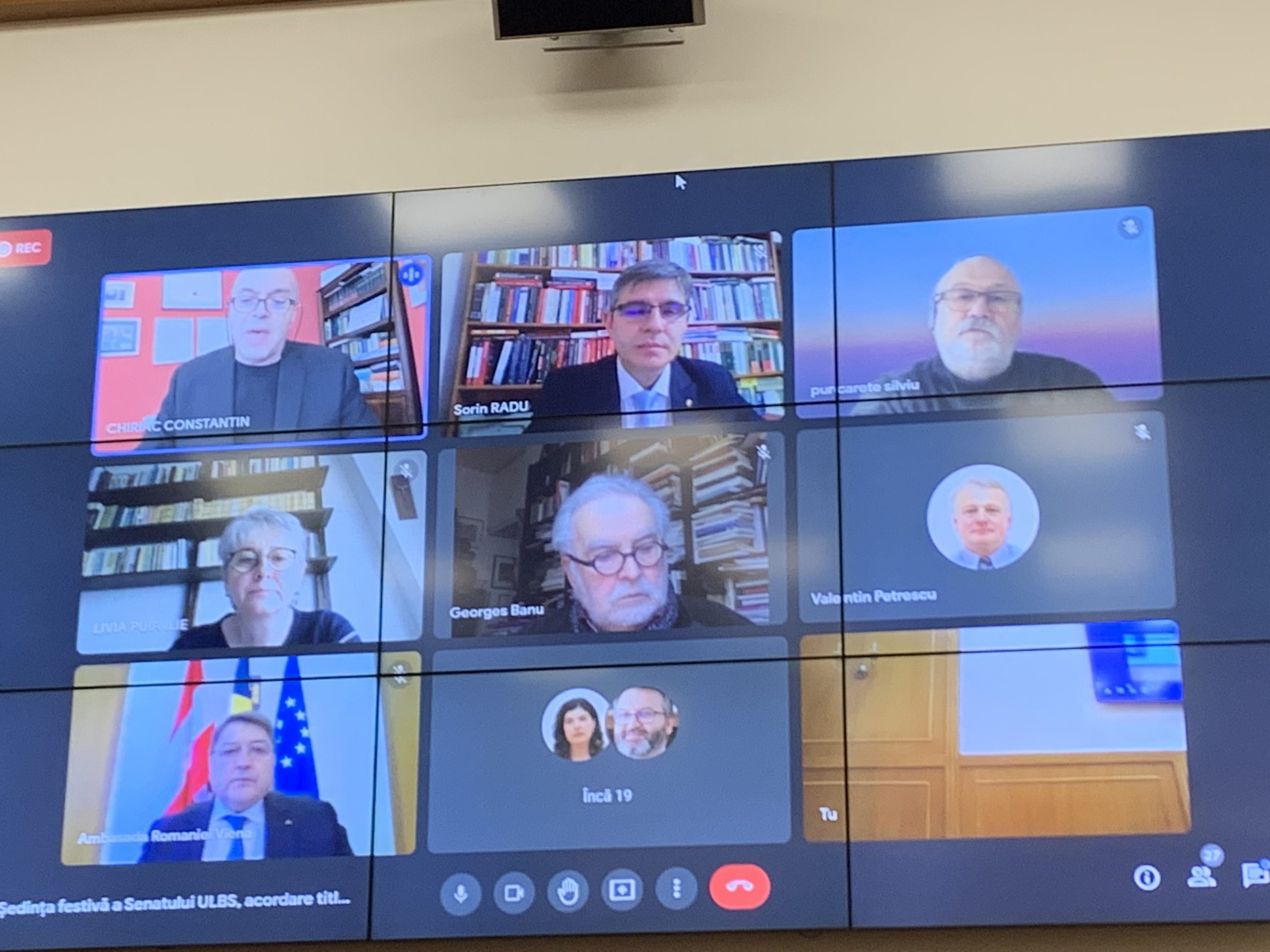 Desfășurată în sistem hibrid, cu reprezentații ULBS în Aula „Avram Iancu” a Facultății de Litere și Arte și invitații conectați la eveniment prin sistem video, ceremonia s-a bucurat de prezența unor nume importante din lumea culturală românească și internațională. Scriitorul și criticul de teatru George Banu, ambasadorul Emil Hurezeanu au intrat în dialog direct cu Silviu Purcărete și Constantin Chiriac, în timp ce ministrul culturii Lucian Romașcanu, Hideki Noda, directorul Tokyo Metropolitan Theatre sau Octavian Saiu, profesor, cercetător și critic de teatru, au transmis mesaje prin care au evocat importanța acestui moment atât pentru regizorul Silviu Purcărete cât și pentru Universitatea ”Lucian Blaga” din Sibiu.