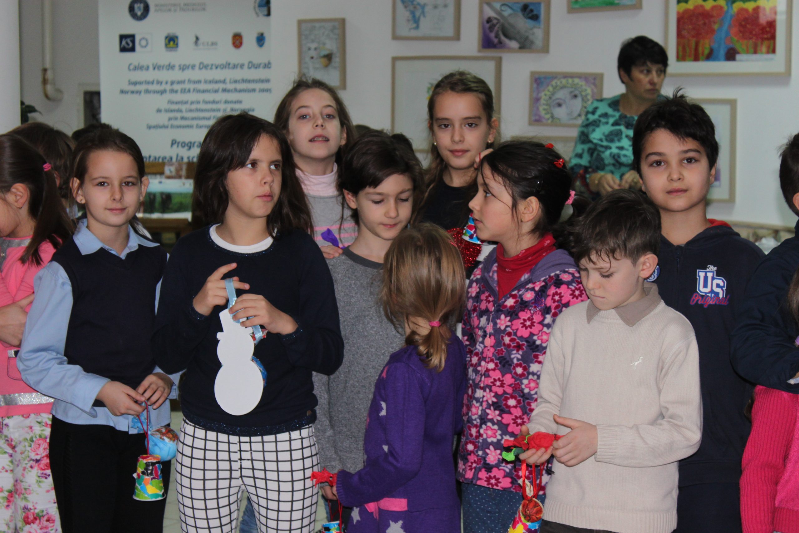 Elevii clasei a II-a B Secţia germană de la a Şcoala Gimnazială “I. L. Caragiale” Sibiu au participat, vineri, 18 decembrie, la împodobirea bradului de Crăciun la sediul Agenției pentru Protecția Mediului Sibiu cu ornamente realizate în totalitate din materiale reciclabile.