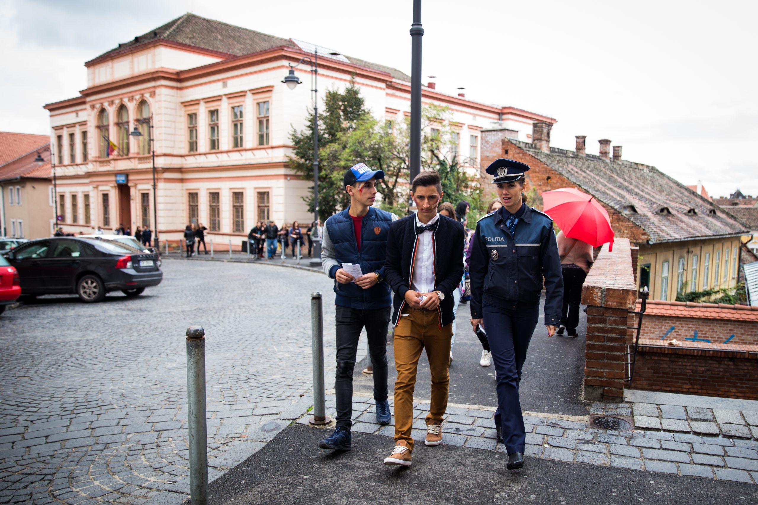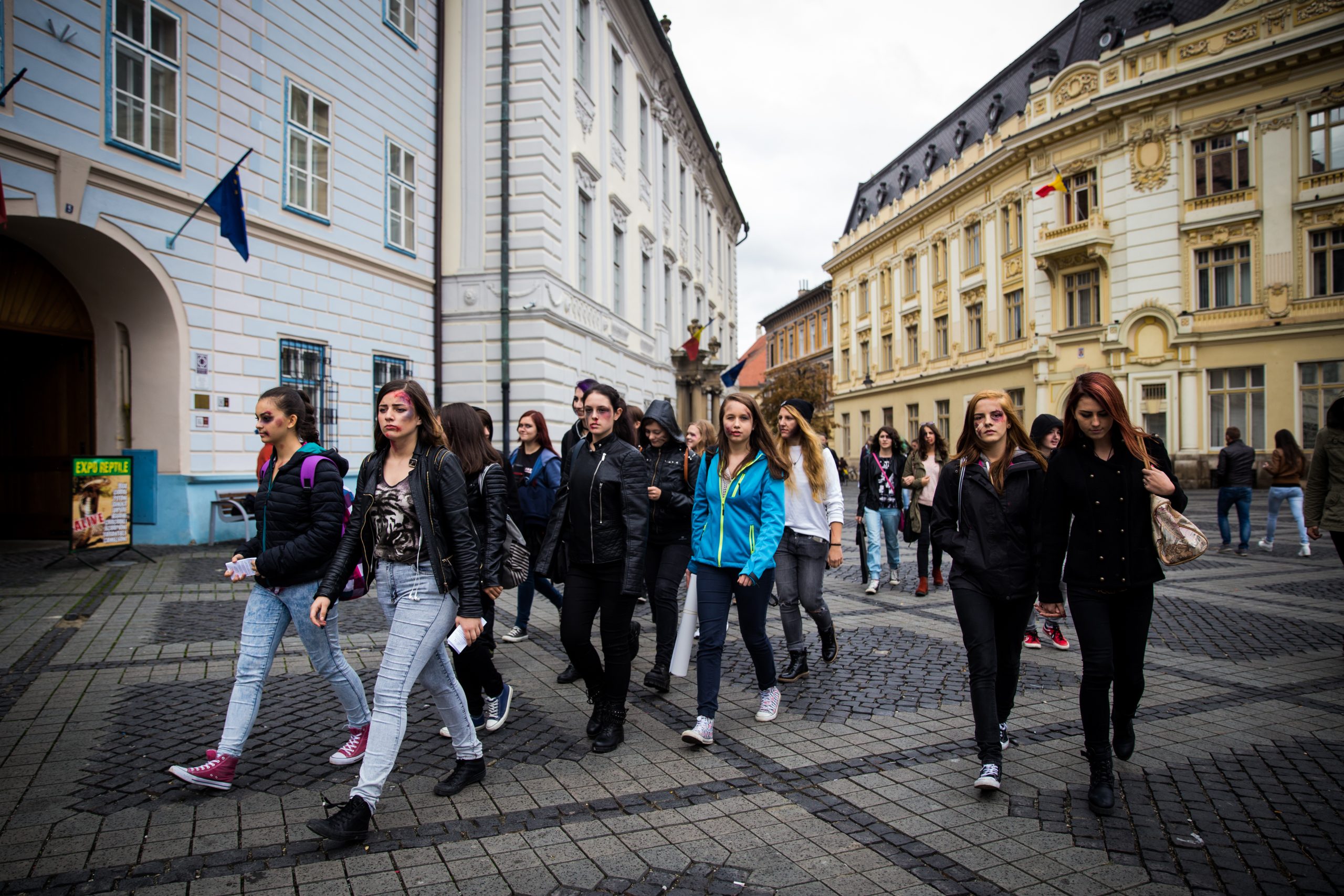 Peste 30 de elevi a două clase a XII-a, din cadrul Liceului de Artă Sibiu și-au pictat fața simulând victimizarea prin acte de violenţă fizică şi au pornit într-un marş spre Liceul „Octavian Goga” din Sibiu, în scopul prevenirii delicvenţei juvenile. Acțiunea aparține poliţiştilor sibieni care au desfășurat marți, 29 septembrie, de la ora 11:45, această activitate, în parteneriat cu Inspectoratul Şcolar Judeţean Sibiu, Asociaţia ALEG şi Asociaţia Femeilor din Sibiu. În cadrul evenimentului a avut loc și o dezbatere interactivă pe tema delicvenţei juvenile în incinta Colegiului Goga. Elevii s-au arătat încântați că fac parte din acest proiect și au fost dornici să arate oamenilor că violența nu este răspunsul. „Având în vedere că la nivel național se desfășoară săptămâna de prevenire a criminalității cu activități specifice în fiecare județ, astăzi în cea de-a doua zi dedicată prevenirii delicvenței juvenile am organizat a ceastă activitate cu liceenii. Pentru a ne atinge scopul activității aceștia au realizat picturi pe față, iar pentru a sublinia scopul nostru vom parcurge un traseu pe pietonală, până la Liceul Goga, iar pe traseu se vor distribui pliante pe tema violenței care vor fi înmânate în special femeilor, dar nu în mod neapărat”, a declarat Adela Pălăştea, agent principal IPJ sibiu