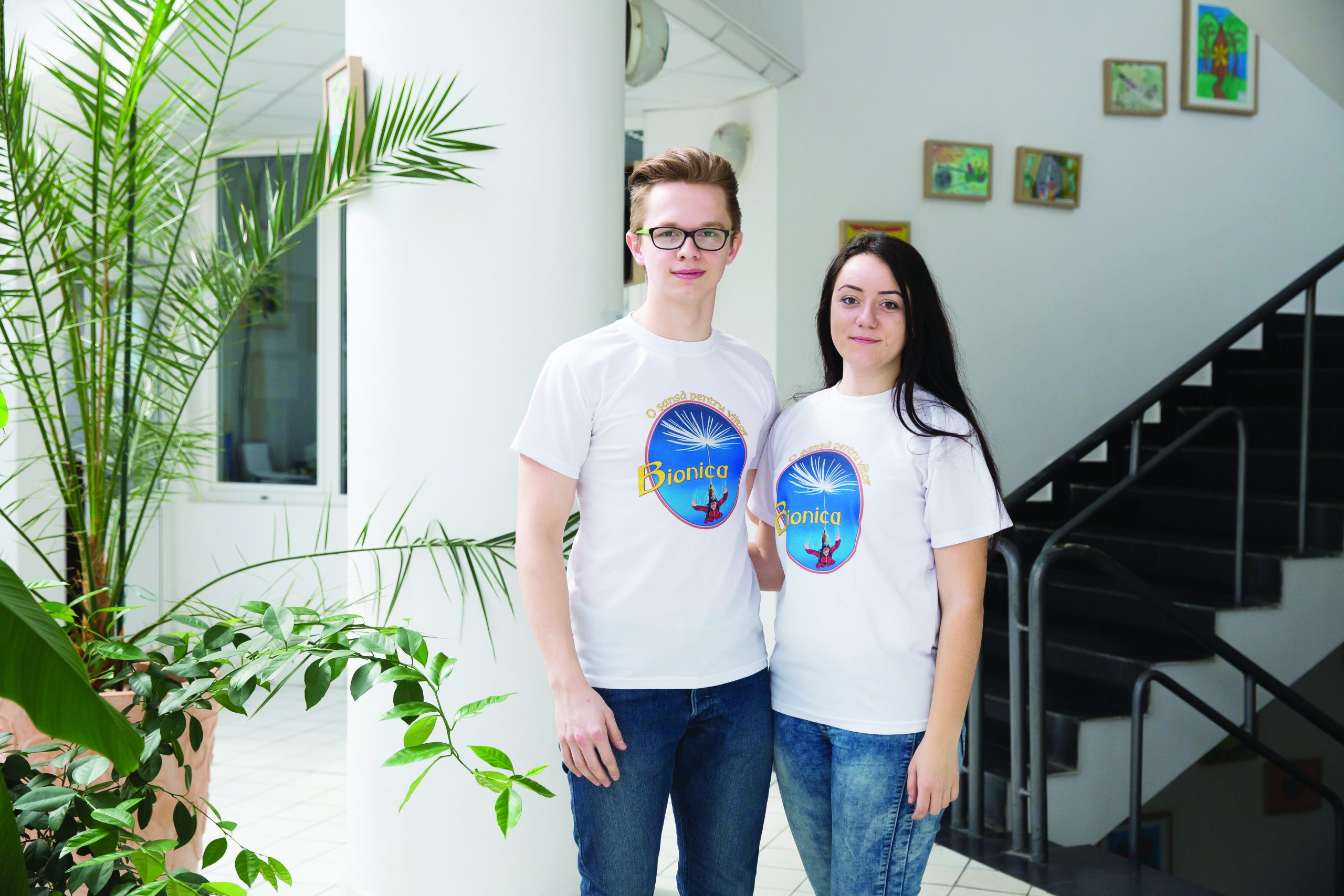 Dragoș și Cristina sunt elevi în clasa a X-a și sunt câștigătorii locului II. Ideea Turnului Bionic le-a fost dată de colegii lor mai mari și ei au preluat-o și dezvoltat-o până a ajuns la rezultatul final. „Doamna profesoară a fost cea care ne-a îndrumat și numai cu ajutorul ei și al celorlalte doamne profesoare am dus la bun sfârșit acest proiect, transformat dintr-unul mast într-unul de mediu”, spune Dragoș. Turnul lor Bionic, este un mic oraș sub forma unei clădiri ecologice, în care găsești de la apartamente de locuit, săli de cinema, birouri, spații comercială, până la grădini suspendate și panouri solare. „Suntem motivați în ceea ce facem, în speranța că ideile noastre vor fi puse în practică pe viitor”, spune Cristina. Cei doi colegi de echipă sunt iubitori de sport și dacă Cristinei îi place să se plimbe cu bicicleta și să descopere peisaje noi, lui Dragoș îi place să meargă la sală, să înoate și să joace volei. Recunoaște însă, că este pasionat și de calculatoare. Sunt tineri și au și ei temerile lor. Cristina se teme ca ideea lor din proiect să nu fie înțeleasă greșit. „Nu este o idee de afacere prosperă, este o idee de protejare a mediului”. Dragoș speră să nu-i dezamăgească pe cei din jur. Asta este cea mai mare temere a lui. Fata își dorește să ajungă inginer proiectant, iar Dragoș nu s-a hotărât încă. Pe parcursul proiectului s-au sprijinit, s-au sfătuit și nu au dat înapoi în realizarea lui. Ce spun ei despre lumea în care trăim? „Nu toți oamenii sunt educați în așa manieră să ajute natura, lucru ce le va dăuna și lor pe viitor. Ar trebui să se susțină ore de ecologie și protejare a mediului înconjurator în școli”, spune Cristina. „Câteodată unii oameni sunt mai răi decât animalele. Aruncarea gunoaielor în spațiile interzise, nereciclarea lor, toate acestea țin de bunul simt și de modul în care au fost educați. Iar la acest capitol, cred eu, că mai trebuie lucrat”, spune și Dragoș. Pentru amândoi ar fi extraordinar dacă proiectul lor ar prinde viață într-o zi. „Așa vom ști că munca noastră nu a fost în zadar”.