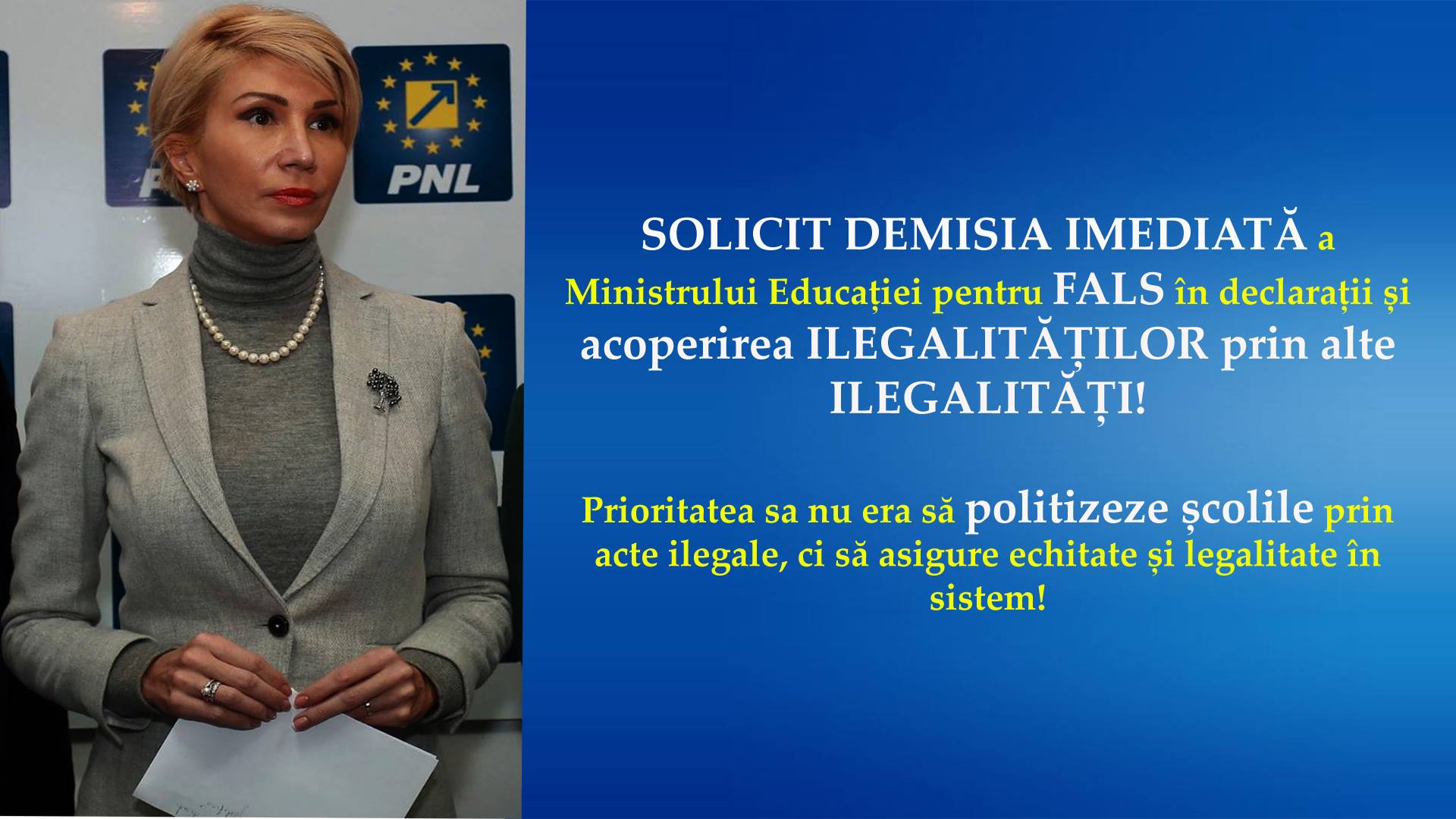 Președintele PNL, Raluca Turcan cere public demisia Ministrului Educației, Pavel Năstase. Deputatul de Sibiu susține că Năstase a mințit cu bună știință în privința directorilor de școli pe care „îi dorește numiți fără concurs și a încălcat legea antedatând Ordinul de Ministru emis în acest scop”.