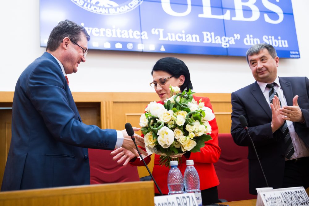 Ministrul Educației, Ecaterina Andronescu se află astăzi la Sibiu, într-o vizită de lucru. La ora 10:30 a avut o întâlnire în Aula „Avram Iancu”, din cadrul Facultății de Istorie a Unuiversității „Lucian Blaga”, cu directorii unităților de învățământ din întreg județul Sibiu și cu membrii Inspectoratului Școlar Județean. Ministrul a fost însoțită de Emilian Novac, inspectorul școlar județean, Gheorghe Bîrză, inspectorul școlar județean adjunct și de Bogdan Trif, Ministrul Turismului și liderul PSD Sibiu. Andronescu a vorbit despre o nouă lege a educației care să includă programul „Școală după școală”, un capitol dedicat părinților și digitalizarea instituțiilor de învățământ.