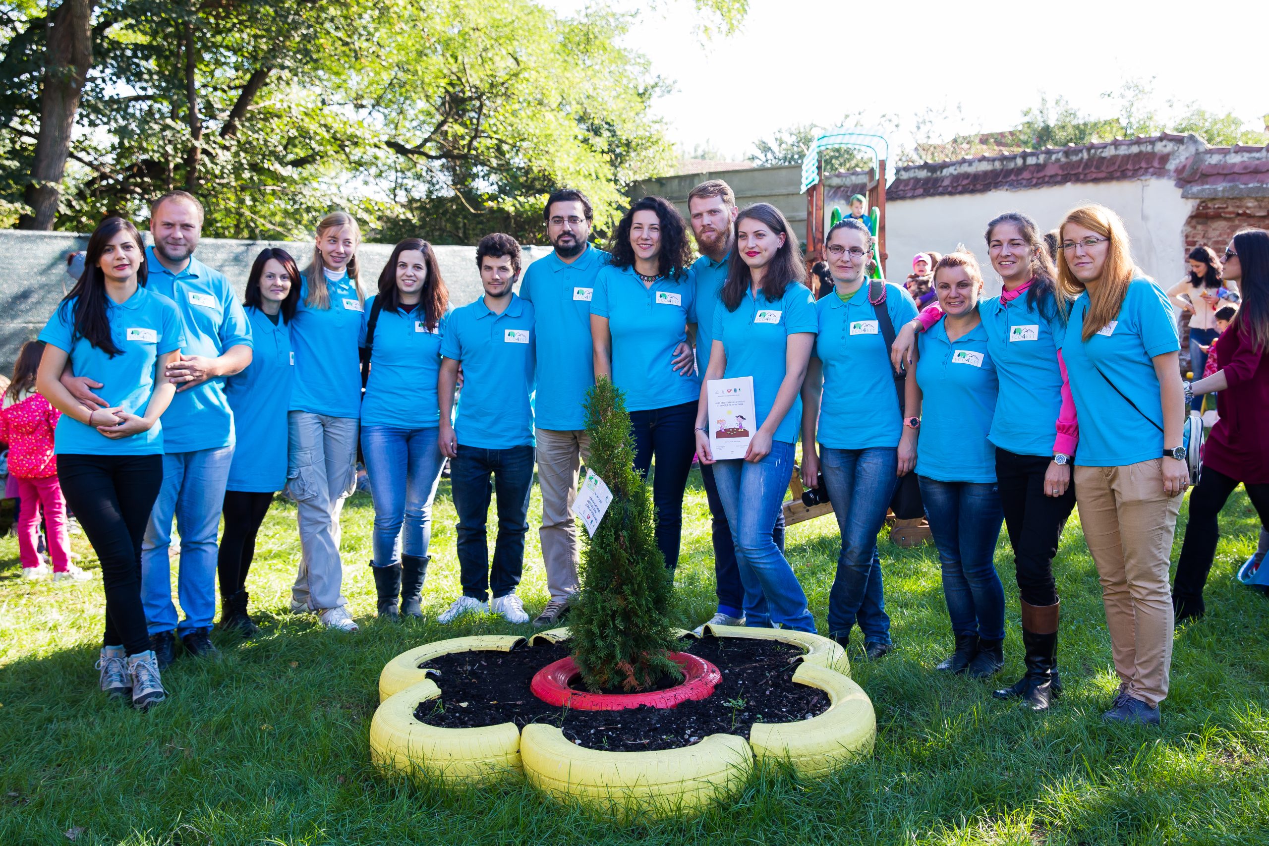 Spațiul verde și locul de joacă din incinta Grădiniței Nr.18 din Sibiu au fost reamenajate în întregime de voluntari. Totul a fost posibil prin proiectul „Un nou loc de joacă, un nou mod de viață – Reamenajarea spațiului verde al grădiniței nr. 18, Sibiu”, care a început în 15 aprilie 2015 și a fost finalizat la sfârșitul lunii septembrie. Proiectul a fost făcut la inițiativa și cu ajutorul voluntarilor Asociației ECO4EST și ai Asociației Munții Făgăraș, avându-i ca parteneri pe cei de la Asociația Teatrul Vostru. Astfel, cei 180 de copii ai Grădiniței se bucură de un spațiu verde, cu tot mobilierul exterior recondiționat, cu locuri de joacă special amenajate sau echipamente de joacă nou achiziționate, multe flori, arbuști și multă culoare. „Împreună cu colegii mei am scris proiectul de reabilitare al spațiului verde din această grădiniță. […] În primul rând am degajat spațiul verde, pentru că totul era ruginit și stricat pe aici, am reabilitat anumite instrumente de joacă, am achiziționat altele noi, am plantat 60 de arbuști de tuia, am plantat 10 pomi fructiferi și, de asemenea, am pus gazon, pentru aspectul verde. Împreună cu cei mici, pentru a-i educa în principiul dezvoltării durabile și al educației ecologice am plantat o grădină de legume, cu roșii, vinete, ardei și flori. Puteți vedea și reciclare prin cauciucurile vopsite, cam asta este în mare ce am făcut”, spune Gheorge Laurean Mugurel, lector universitar la Facultatea de Științe, departamentul Ecologie și Protecție a Mediului și membru voluntar în cadrul ECO4EST. Inaugurarea a avut loc joi, 1 octombrie, în prezența micuților, a părinților, a cadrelor didactice și a reprezentanților Inspectoratului Școlar Județean. A fost dans, au fost personaje de desene animate, spectacol, totul pentru bucuria de nestăvilit a copiilor. „Este un mare câștig și un mare sprijin pe care l-am primit din partea studenților și a asociației. Au venit cu inima curată, cu un gând bun, ne-au mobilizat și pe noi, cadrele didactice, părinții, copiii și toți au răspuns acestui gând și am reușit să facem ceea ce se vede. Mulțumim foarte mult tuturor celor implicați”, Simona Lungu, director Grădinița nr.18.