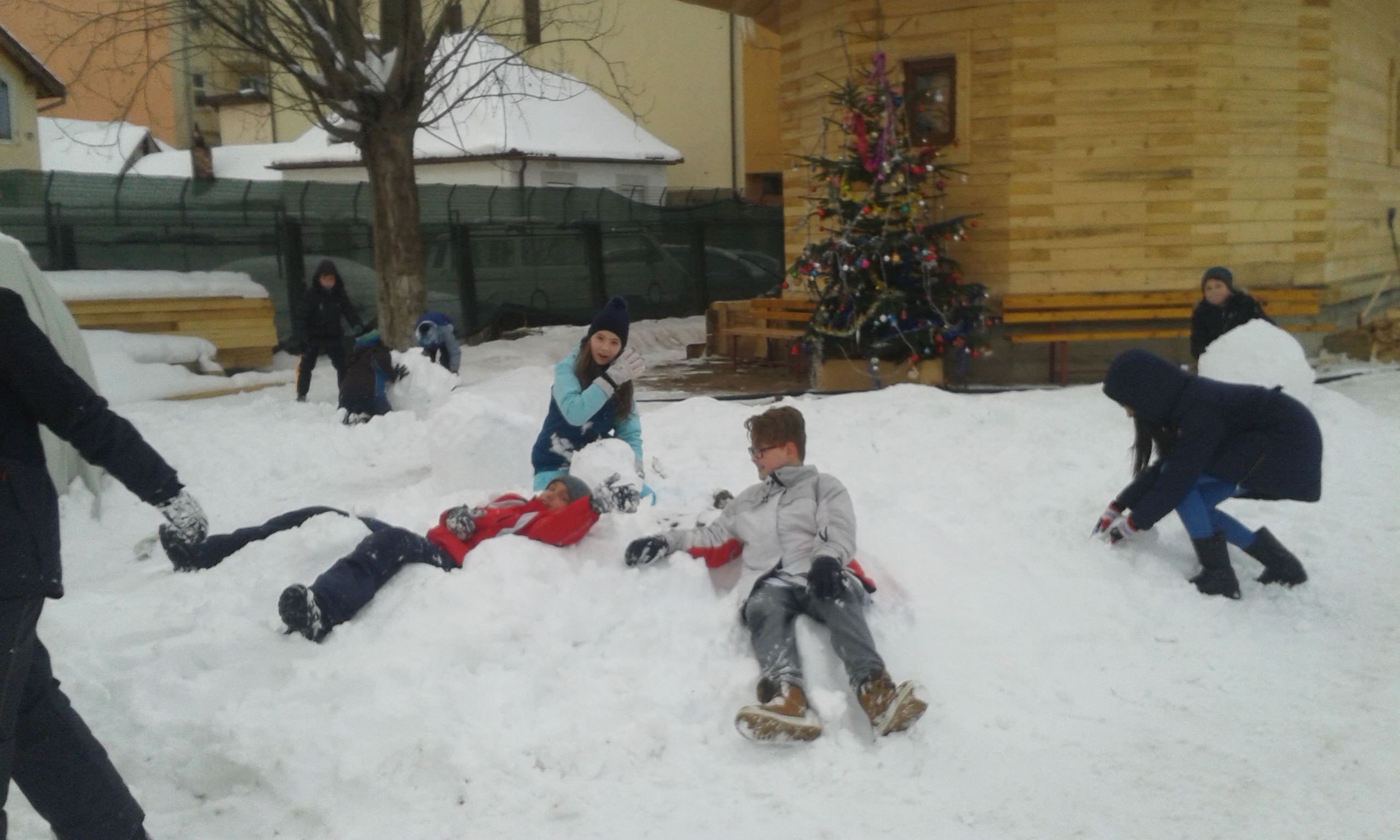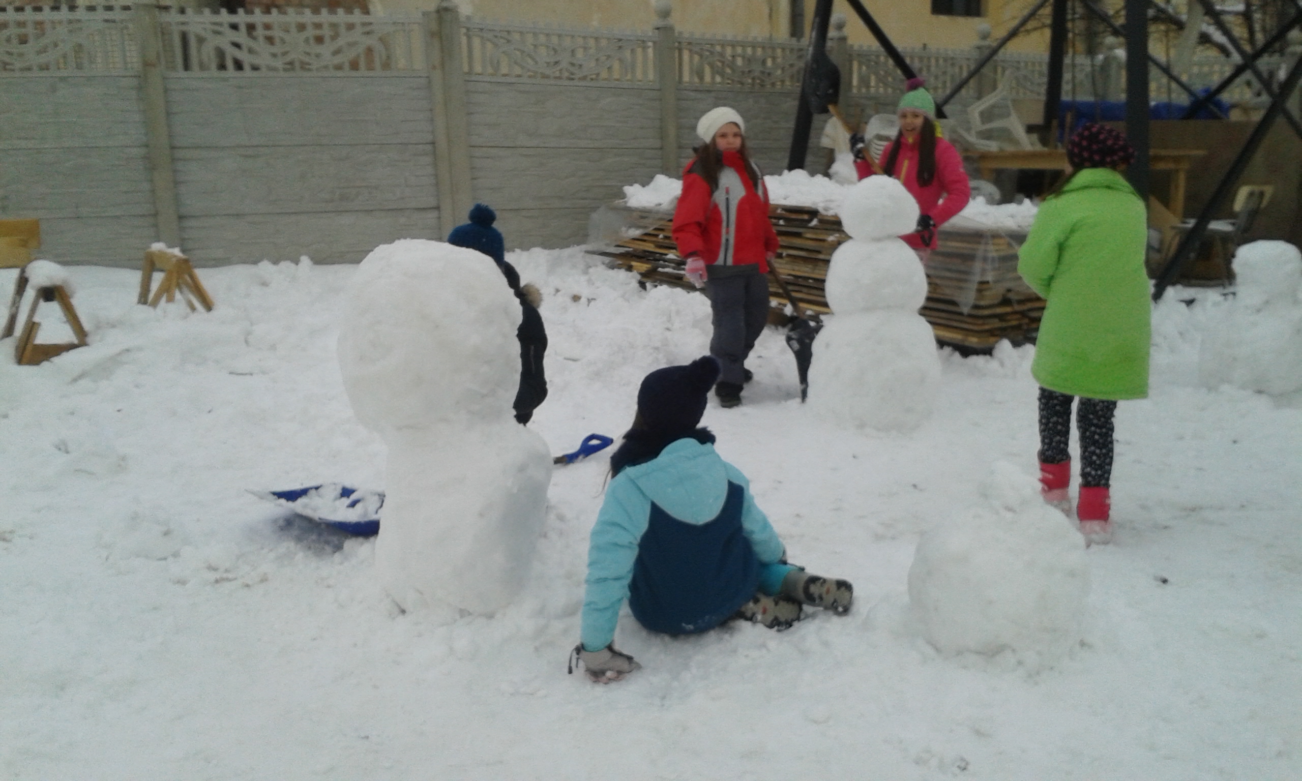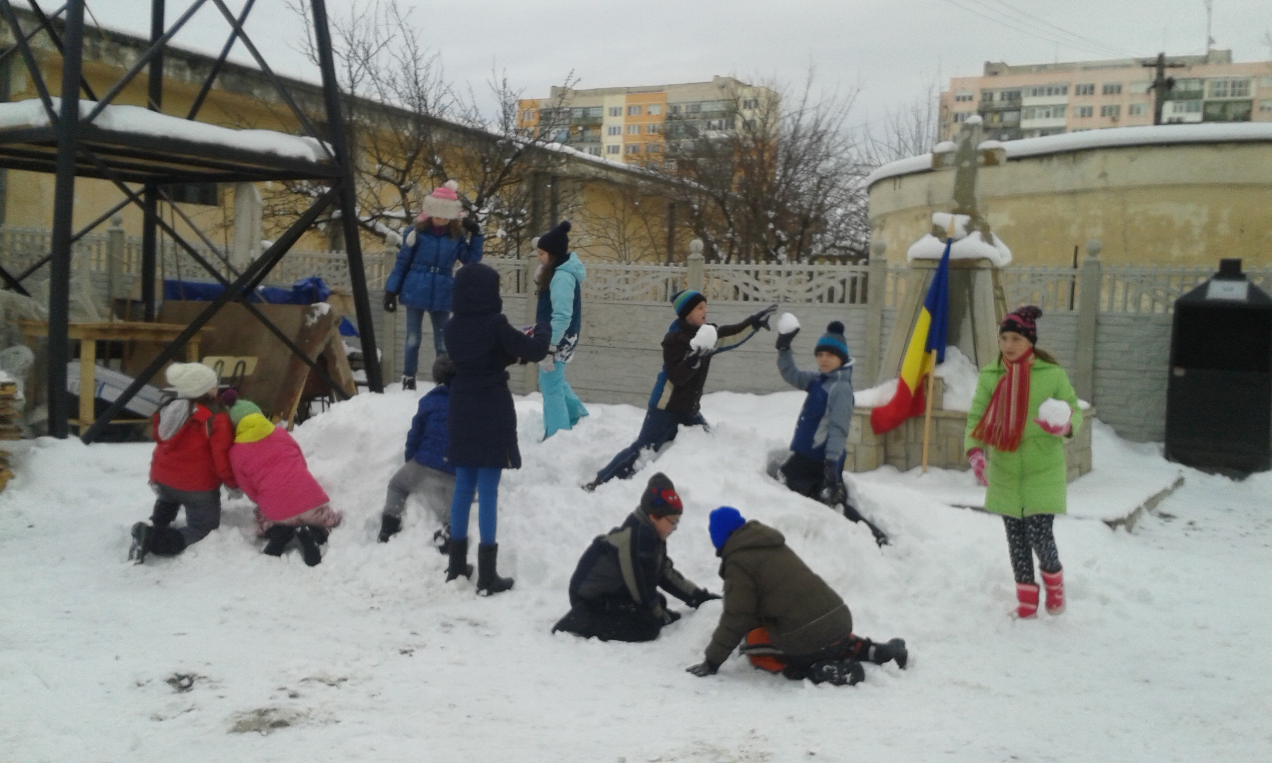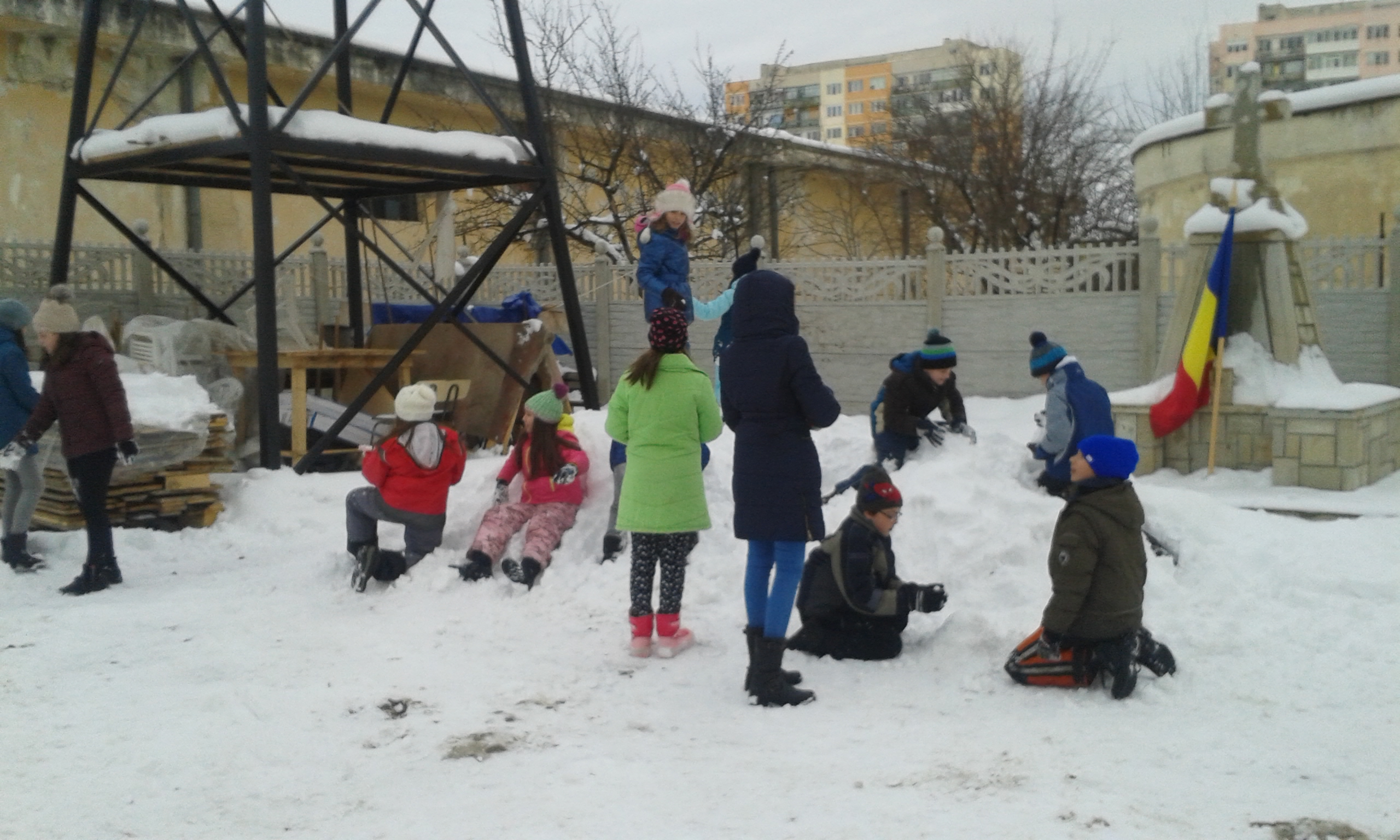 Finalul trecut de săptămână, cu zăpadă și temperaturi nu foarte scazute, a fost prilej de bucurie, mai ales pentru copii. Sâmbătă, 13 ianuarie, curtea Bisericii Sfântul Mina din Sibiu, aflată pe strada Plugarilor, s-a umplut timp de două ore de veselia elevilor clasei a V-a D, de la Şcoala Gimnazială ,,Nicolae Iorga” Sibiu. Însoțiți de diriginta lor, copiii s-au bucurat de zăpadă, au făcut împreună oameni de zăpadă şi s-au bulgărit. „S-au distrat minunat și s-au simțit bine unii în compania celorlalți. Au respirat aer curat, s-au jucat, dar nu au uitat nici de ziua de 15 ianuarie, ziua lui Mihai Eminescu, sufletul poporului român. Cu multă dragoste, au sculptat în zăpada chipul poetului naţional”, spune diriginta lor Măriuca Neagu.