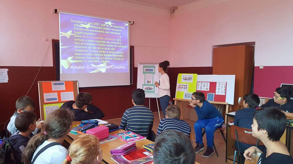 Elevii clasei a VII-a B au creat mici dicționare (român-englez-german), pe care le-au dăruit colegilor mai mici din clasa a II-a A. Aceștia, la rândul lor, le-au dăruit celor din clasa a VII-a B cărți poștale realizate de ei. Întâlnirea dintre elevi a fost fructuoasă, aceștia interacționând cu mare plăcere. De asemenea, elevii claselor VI B, VIII A, respectiv VIII B au realizat proiecte pe grupe , au schimbat idei , au completat acrostihuri,au participat la un concurs tematic Au scris formulele uzuale de salut si de interactiune cognitiva in limbile germana, engleza, spaniola, italiana.. Proiectele le-au expus pe holul scolii.Atmosfera din timpul activitatii a fost de veselie, de colaborare, de bucurie, competitie constructiva, de invatare printr-o activitate ludica, distractiva.