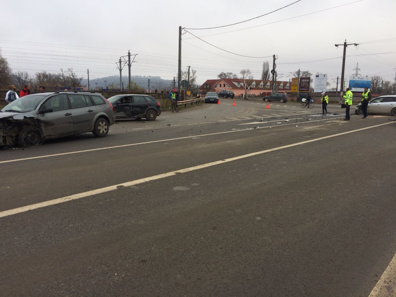 3 autoturisme au fost implicate, marți în jurul amiezii, într-un accident rutier produs pe raza orașului Dumbrăveni. Polițiștii rutieri spun că un șofer în vârstă de 27 de ani din Mureș, care circula dinspre Mediaș spre Sighișoara, nu s-a asigurat la efectuarea virajului la stânga și nu a acordat prioritate autoturismului condus regulamentar din sens opus, a intrat în coliziune cu acestași l-a proiectat într-o altă mașină oprită pentru a intra în Drumul Național 14. Doi adulți și o minoră, toți din primulautoturism lovit, au fost transportați la spitalul din Mediaș pentru acordarea de îngrijiri medicale. Alți doi pasageri din autoturismul care a provocat accidentul rutier au primit îngrijiri la locul producerii evenimentului. Pe Drumul Național 14 traficul a fost oprit câteva zeci de minute.