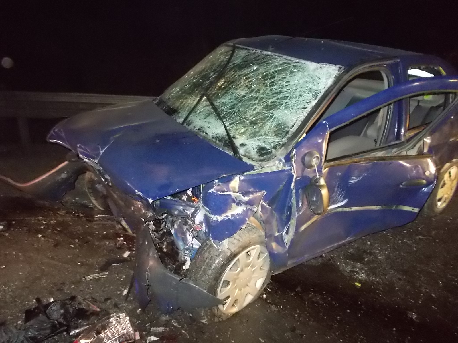 4 persoane și-au văzut moartea cu ochii, joi seara, la intrarea în Mediaș, pe Drumul Național 14. Șoferul unui Audi care circula spre Mediaș a intrat cu viteză într-o curbă, a pierdut controlul direcției și s-a izbit violent de un Logan care circula regulamentar spre Sibiu. 4 persoane din cele două mașini au fost rănite, una dintre ele fiind descarcerată de un echipaj de la Detașamentul de Pompieri Mediaș. Au intervenit pentru salvarea celor 4 răniți mai multe echipaje de Ambulanță și SMURD de la Mediaș, victimele fiind ulterior preluate de autospeciala pentru victime multiple și transportate la Spitall Clinic Județean Sibiu. „Din verificările efectuate la fața loculuia rezultat că șoferul autoturismului marca Audi care se deplasa pe Drumul Național 14 din direcția municipiul Sibiu spre municipiul Mediaș nu a adaptat viteza de deplasare la condițiile de drum alunecos și în curbă, a derapat, a pătruns pe sensul opus de mers și s-a lovit frontal de un autoturism marca Dacia Logan care circula regulamentar din sens opus. În urma accidentului a rezultat vătămarea corporală a 4 persoane, toate 4 fiind transportate la Spitalul Clinic Județean Sibiu pentr îngrijiri medicale. Cercetările continuă de către Biroul Rutier Mediaș”, a declarat comisarul Ion Mogoșan, șeful Poliției Rutiere Mediaș.