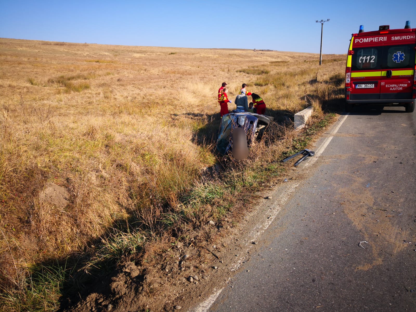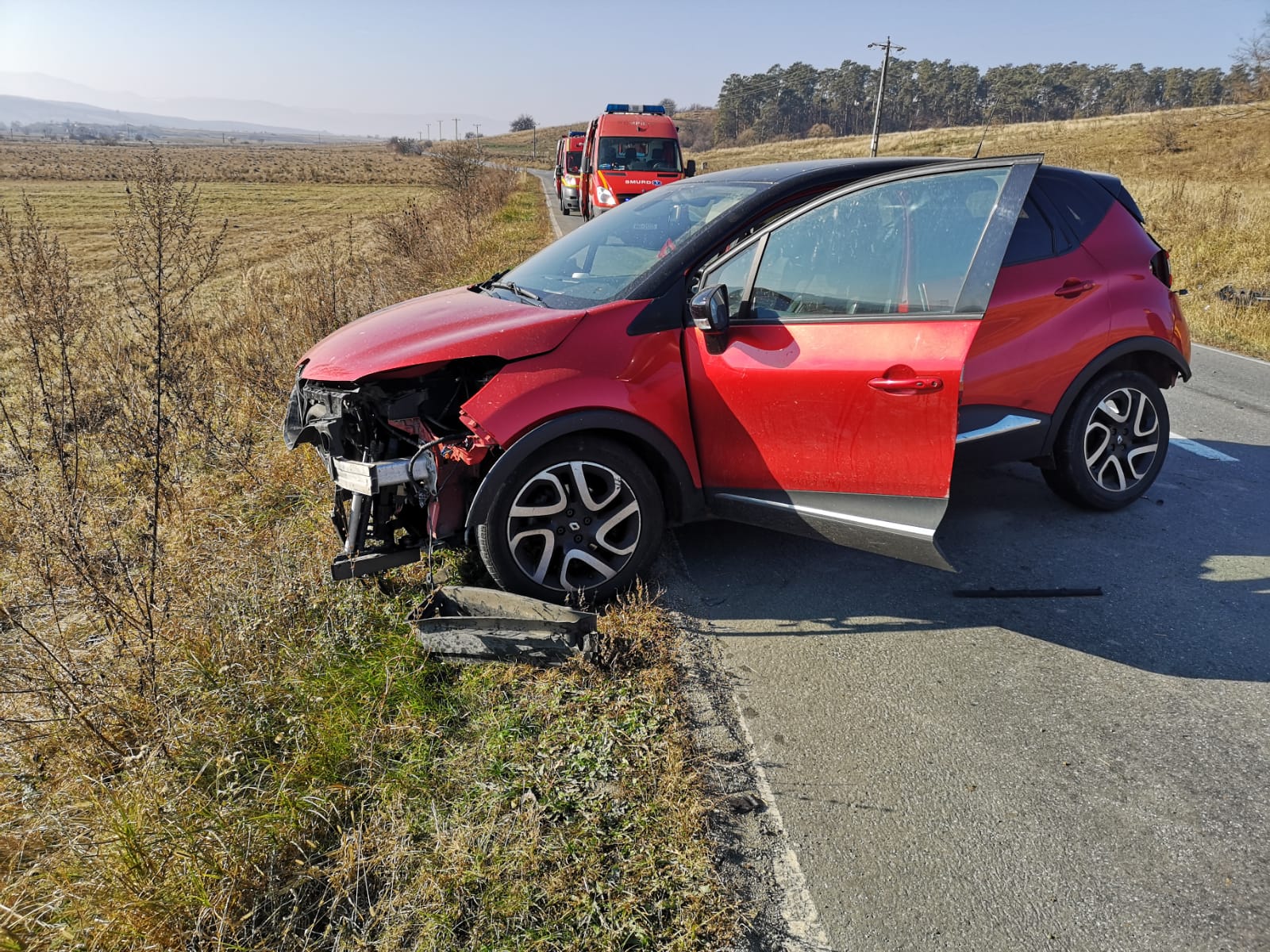 Accident grav la ieșire din Cornățel spre Agnita. Două mașini au fost implicte iar una dintre acestea a lovit și un cap de pod și s-a răsturnat în șanț. Doi oameni au fost răniți în urma impactului.