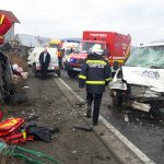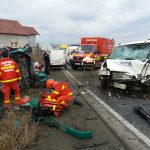 UPDATE – Potrivit ISU Sibiu, o persoană este încarcerată în microbuzul răsturnat, iar alte două persoane au fost preluate de Ambulanță și SMURD. Toate persoanele sunt conștiente. În acest moment se lucrează pentru descarcerarea victimei prinsă în microbuz. Șoferii celor două microbuze și un pasager au fost răniți în urma accidentului rutier.
