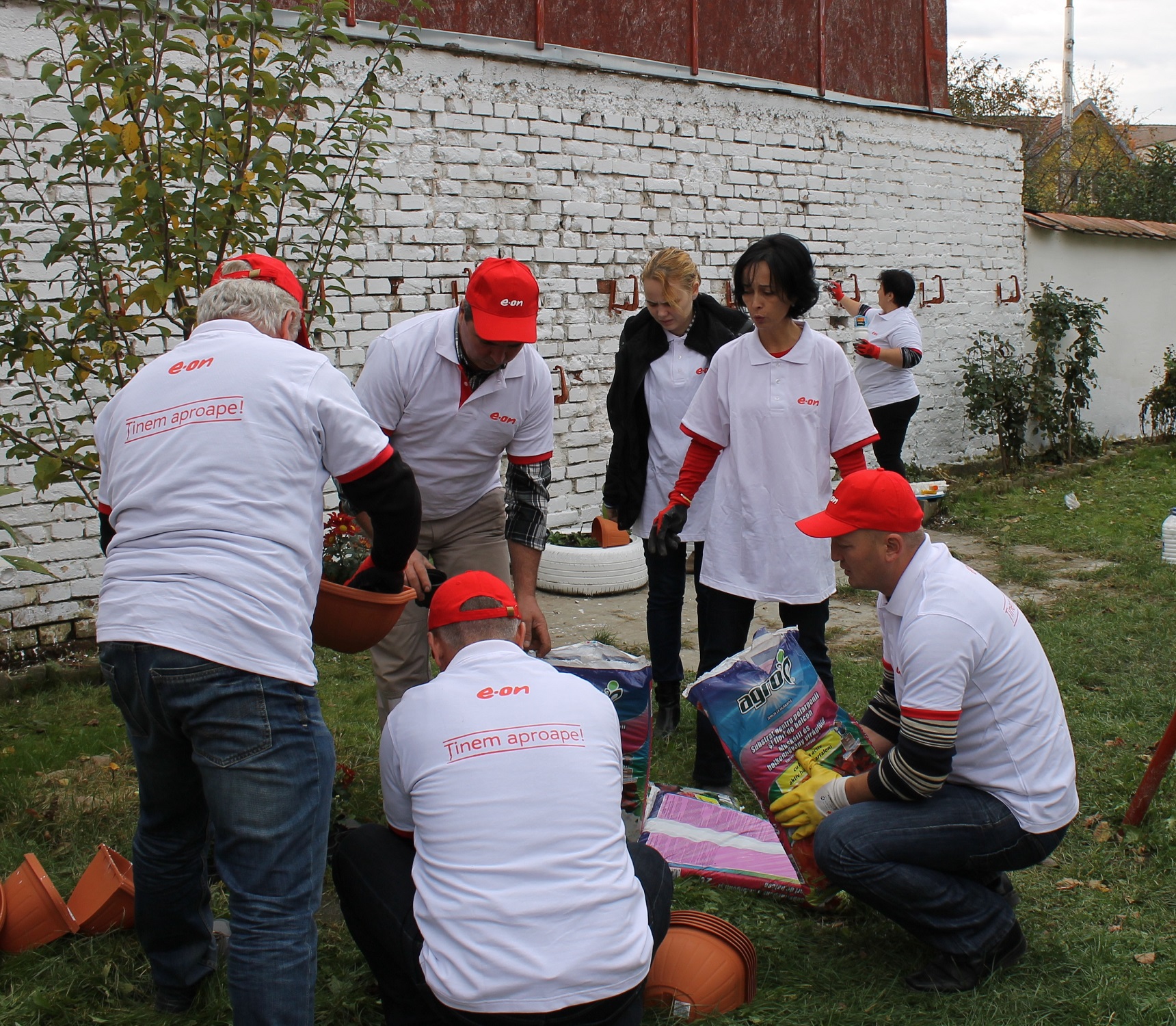 Marţi, 25 octombrie, 30 de angajaţi ai companiei E.ON din Sibiu au lăsat pentru câteva ore deoparte birourile, computerele sau echipamentele specifice meseriei lor şi s-au dedicat creării unor condiţii mai bune pentru copiii de la Grădiniţa numărul 7 de pe strada Guşteriţei. Spaţiul de joacă exterior a căpătat un aer mai proaspăt prin lucrări de vopsire, montare suporturi la ghivecele de flori şi alte mici lucrări, toate materialele şi ustensilele necesare fiind asigurate de companie. Cei mici nu au fost desigur uitaţi, bucurându-se de un cadou surpriză primit de la angajaţii E.ON. „Vorbele ne aseamănă, gesturile ne deosebesc, iar faptele ne dau valoarea. Cert e că omul sfinţeşte locul, aşa cum spune o vorbă din bătrâni. Tot ceea ce e uman pleacă de la o idee, de aceea salutăm iniţiativa echipei manageriale a E.ON şi pe această cale le mulţumim şi îi felicităm că au fost cu un pas înainte, că au ales să susţină educaţia prin puterea exemplului, reuşind să încălzească, de data aceasta, sufletul copiilor reflectat în privirea inocentă şi zâmbetul curat şi sincer”, a declarat prof. dr. Maria Turean, inspector şcolar al Inspectoratului Şcolar Judeţean Sibiu.