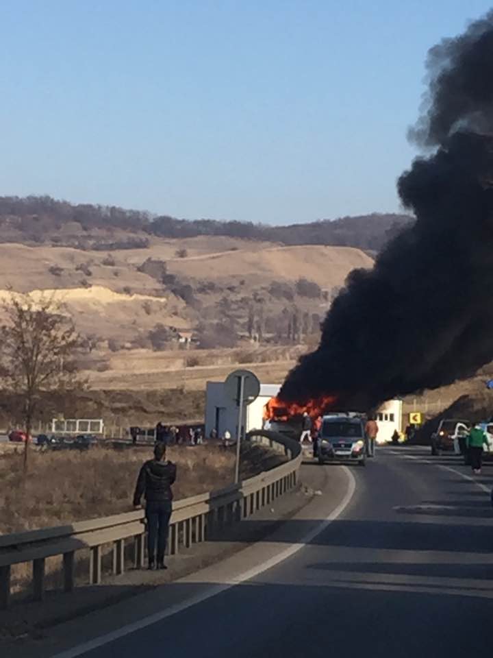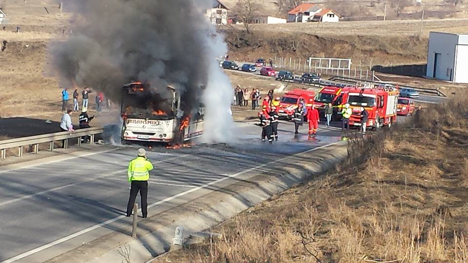 Traficul a fost blocat total timp de câteva zeci de minute peDrmul Național 14, luni după amiaza, la intrarea în Tîrnava, după ce un autobuz a luat foc. Cei 6 pasageri din autobuz au fost evacuați la timp, nefiind afectați de incendiu. Pentru stingerea focului a intervenit Detașamentul de Pompieri Mediaș cu două autospeciale. De asemenea, la fața locului s-a aflat și un echipaj SMURD. Cel mai probabil autobuzul a luat foc din cauza unor defecțiuni la instalația electrică.