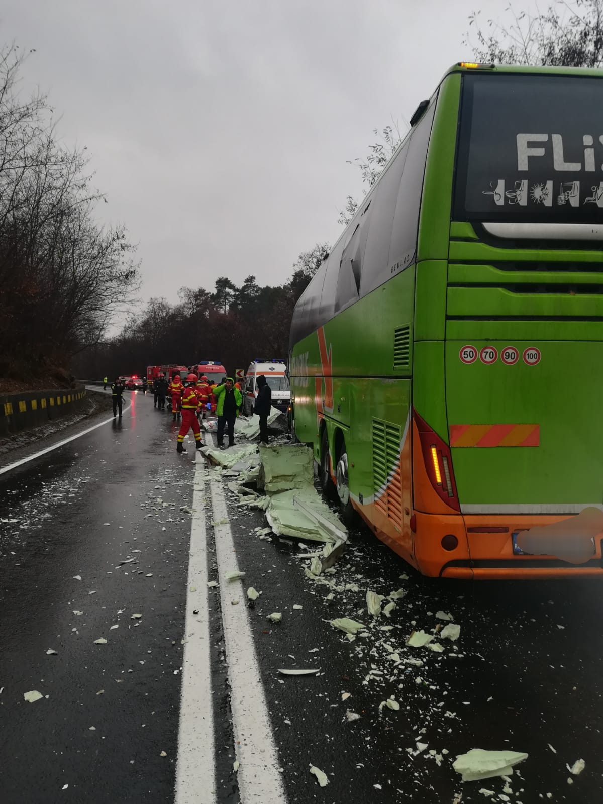UPDATE: Autocarul implicat în accident urma să ajungă de la București în Franța, iar TIR-ul era încărcat cu roșii. Șoferul venea de la Viena și mergea spre Ploiești. Acesta susține că nu avea mai mult de 30 de kilometri la oră. Ancheta polițiștilor va stabili împrejurările exacte în care s-a produs accidentul. Traficul în zonă de desfășoară alternativ.