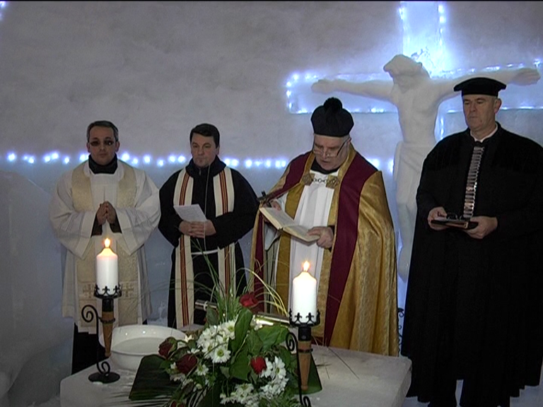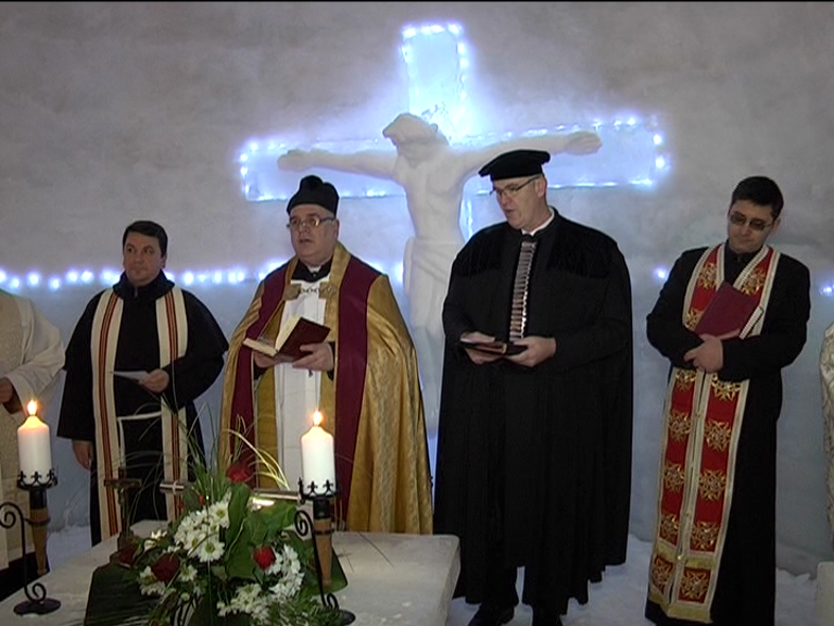 Biserica de gheață de la Bâlea Laca fost sfințită. Lăcașul de cult din inima munților a primit binecuvântarea a șase preoți de diferite confesiuni. Zeci de turiști au participat la ceremonie și au fost încântați de construcția de gheață.