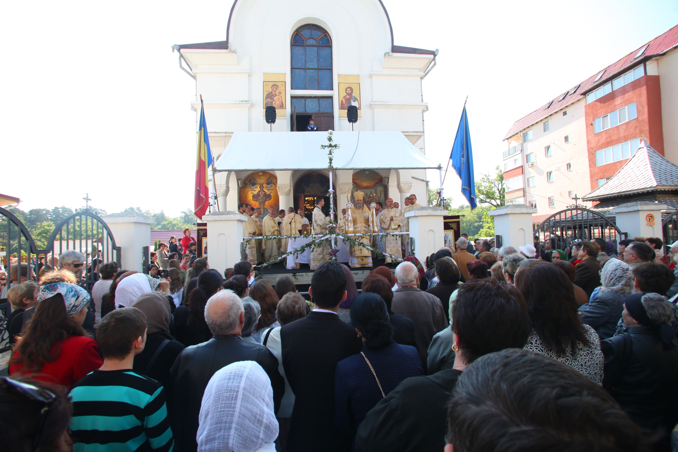 Ierarhul a fost întâmpinat de preoţii şi credincioşii comunităţii la intersecţia dintre Calea Poplăcii şi strada Ludoş, de unde s-a mers în procesiune până la biserică. Copiii din cartier şi elevii beneficiarii Centrului de zi al bisericii din Valea Aurie au participat la procesiune înveşmântaţi în straie populare şi purtând steagul naţional.