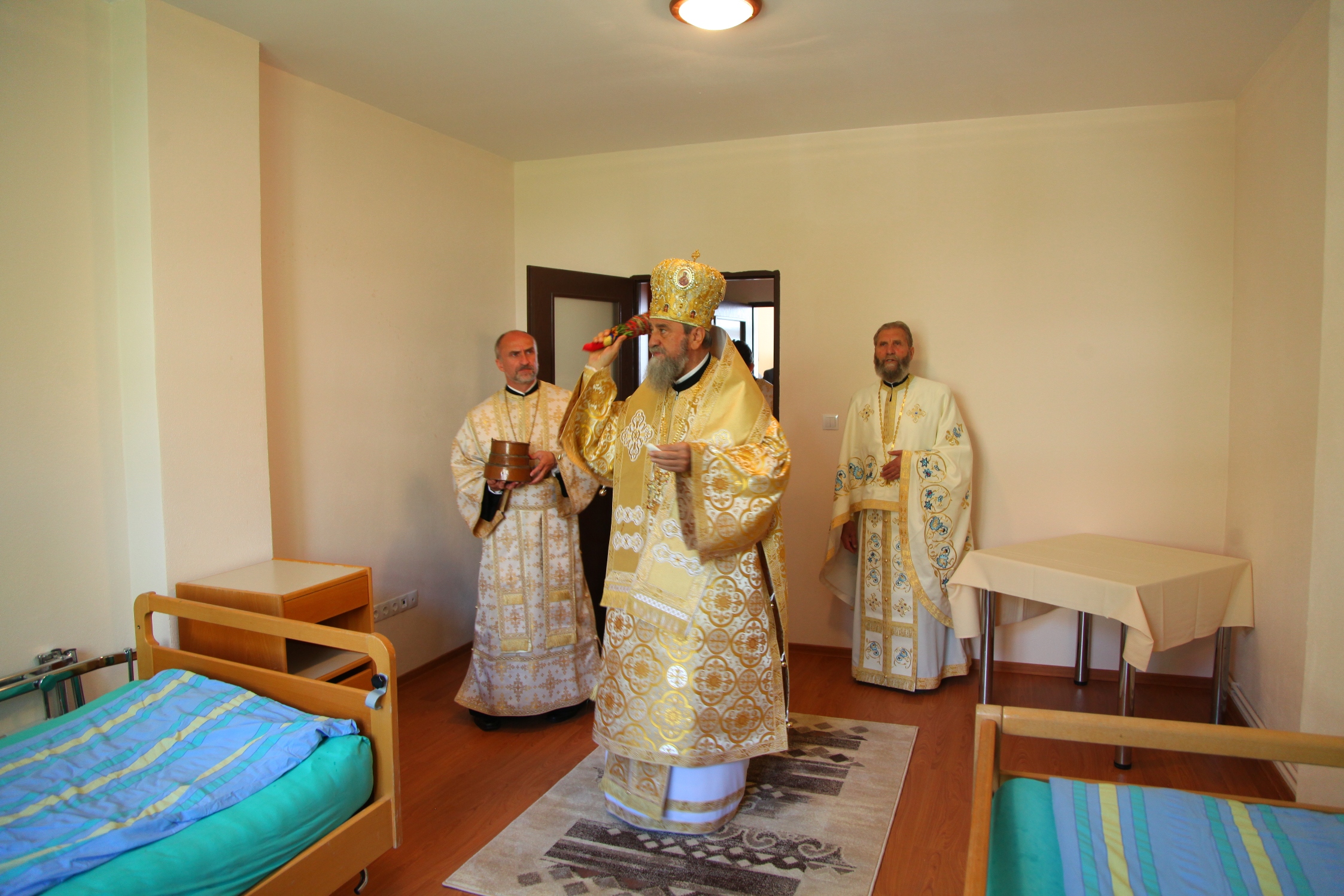 A urmat sfinţirea Căminului pentru vârstnici de la etajul aşezământului, ierarhul şi soborul de preoţi sfinţind cele nouă camere unde vor fi îngrijiţi în viitorul apropiat 18 bătrâni.