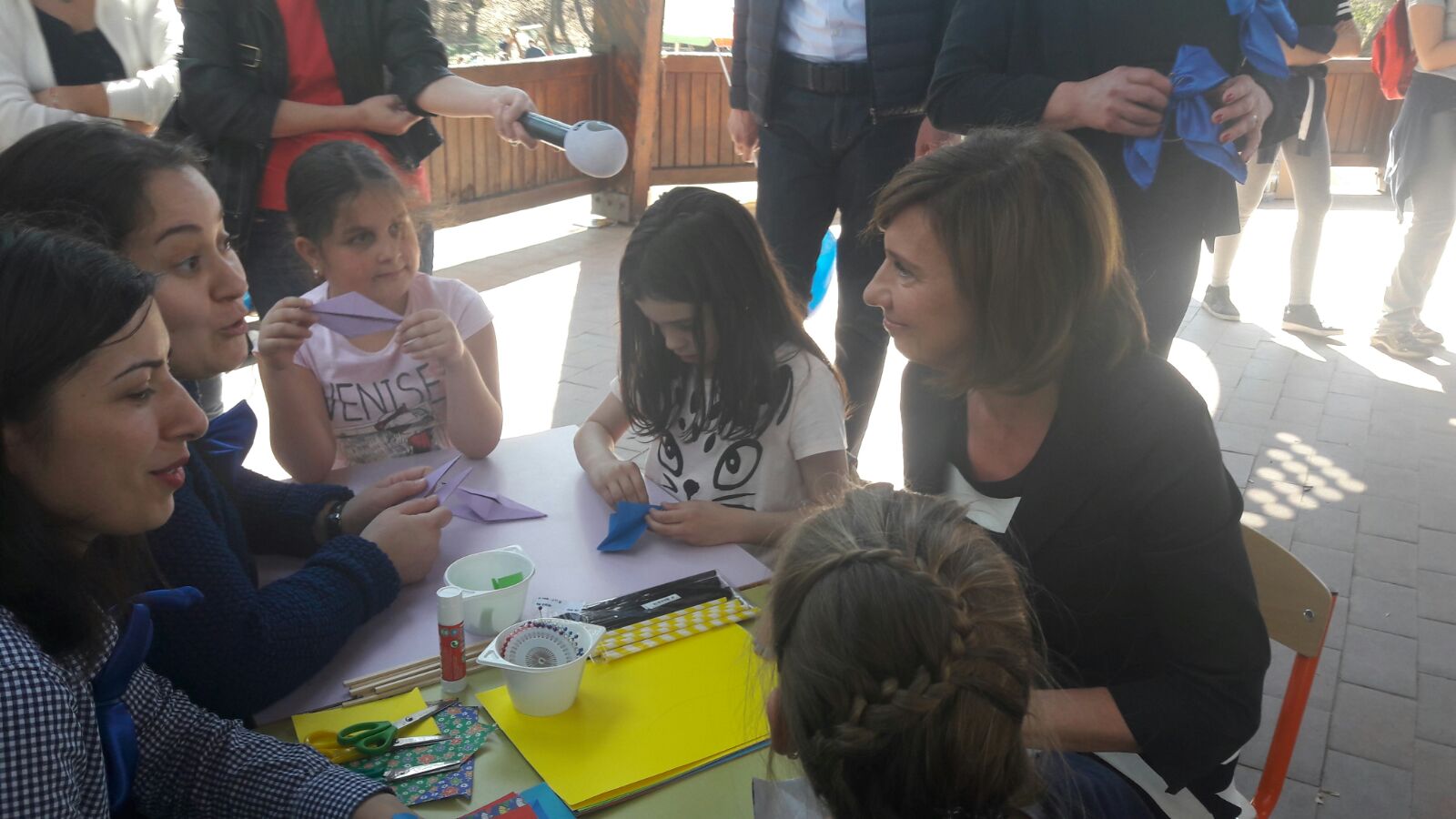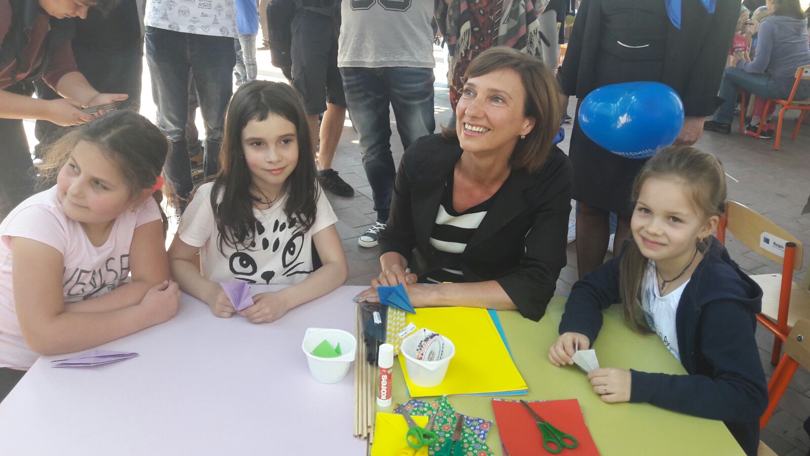 Aceasta a dat mâna cu copiii, a stat de vorbă cu ei şi s-a fotografiat cu micuţii.